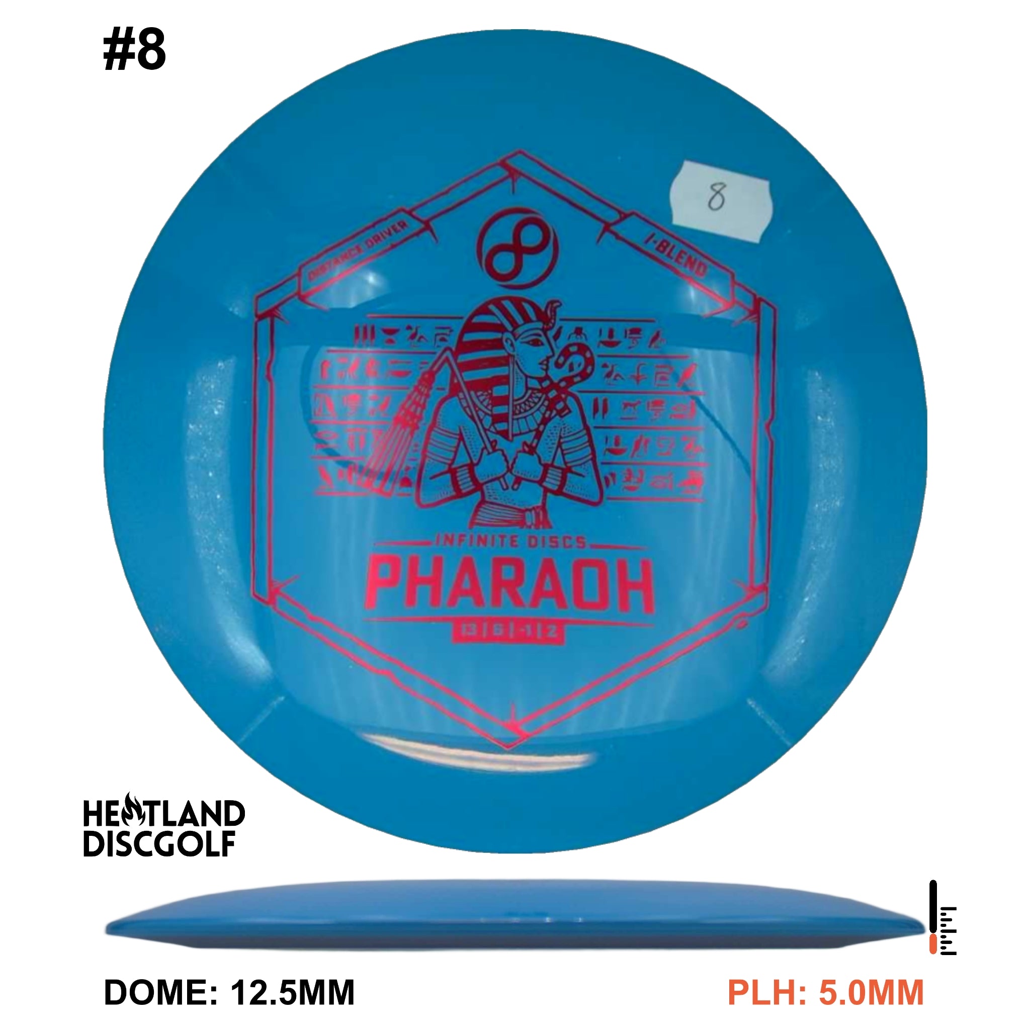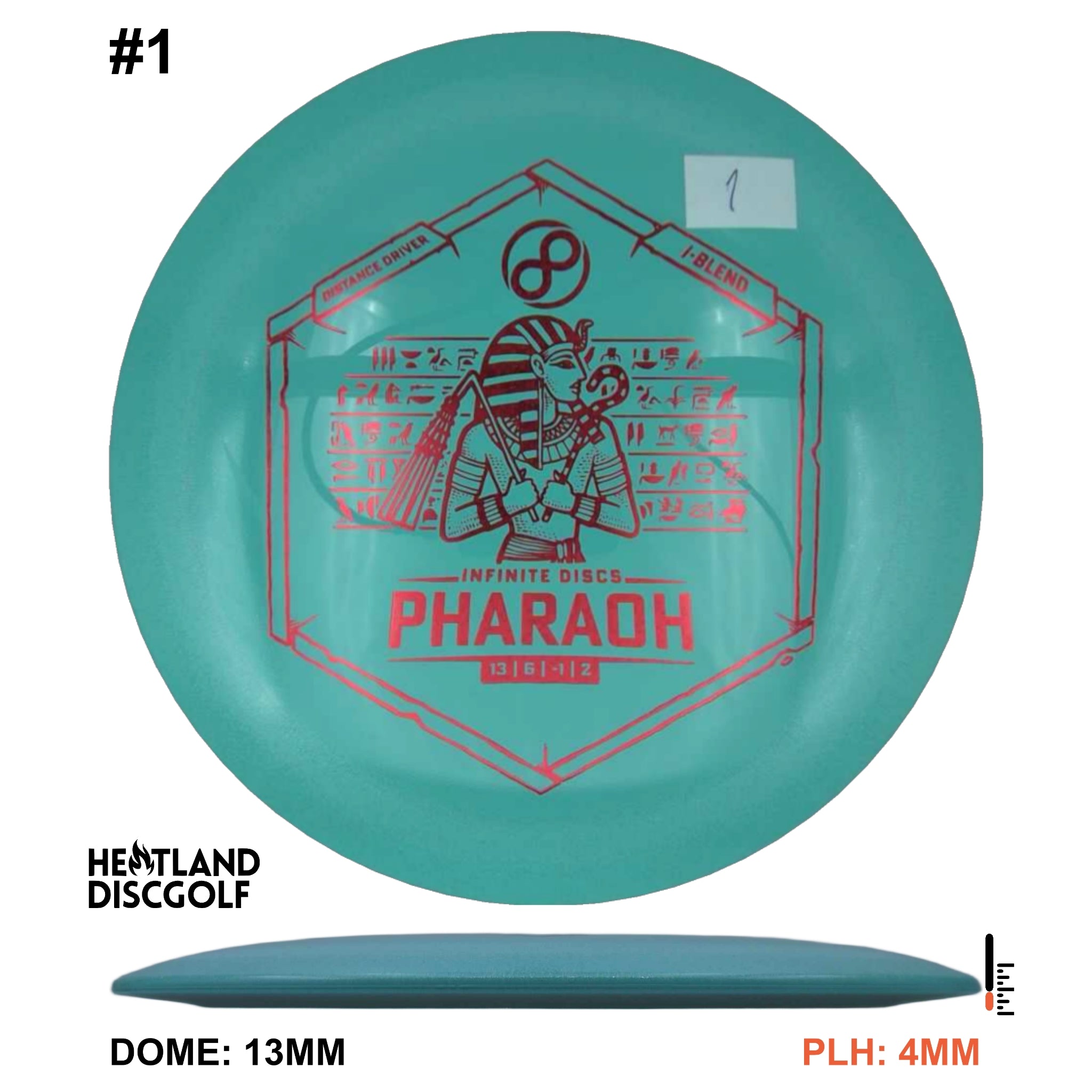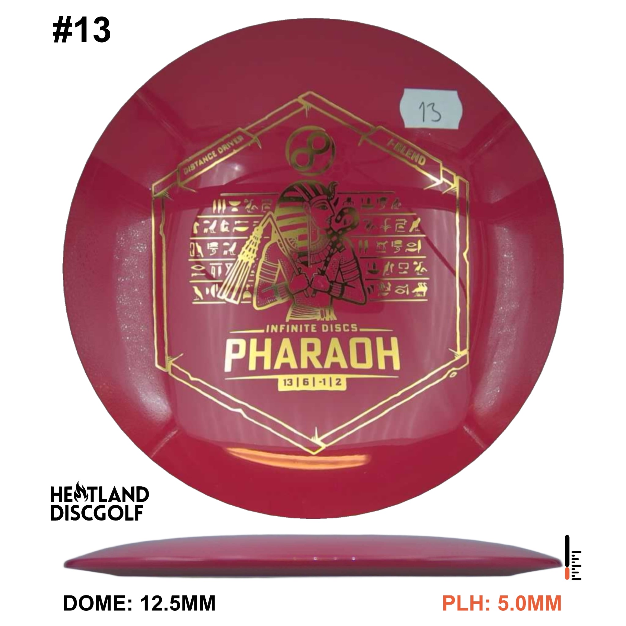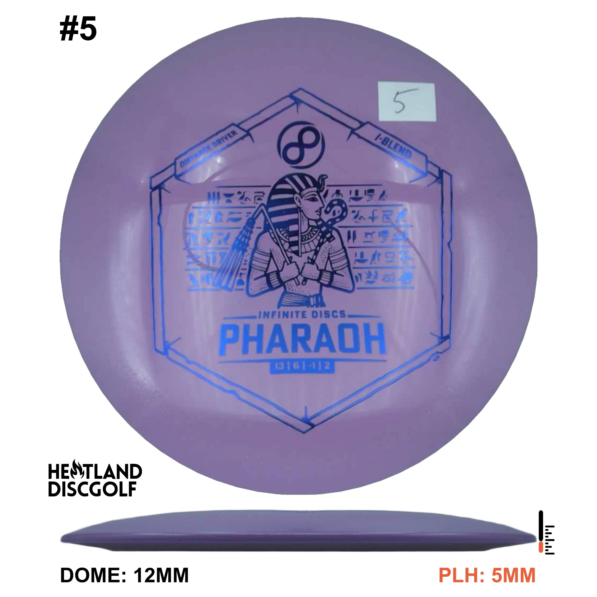 NOTE: The flight numbers may change on different runs. For example, the "Run 3" I-Blend Pharaoh is more understable and has a flight rating of 13 / 6 / -2 / 2 which is different than the first two runs which were on Swirly S-Blend plastic. The Run 5 Swirly S-Blend Pharaoh is more overstable than any previous run.