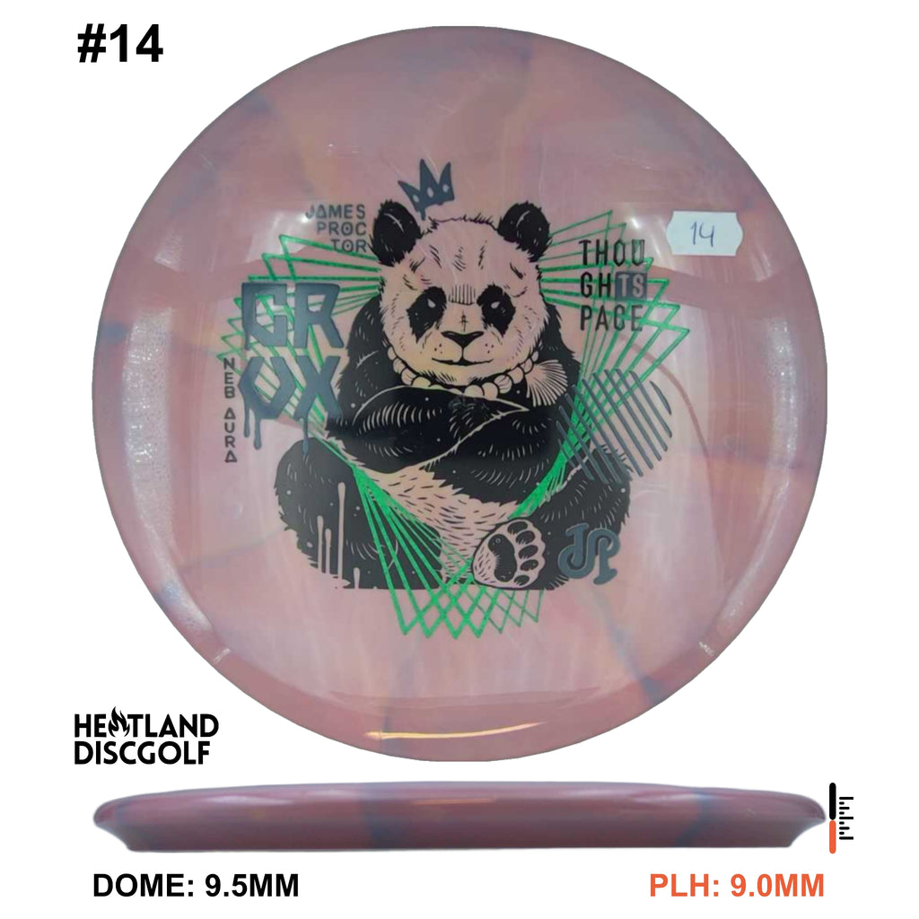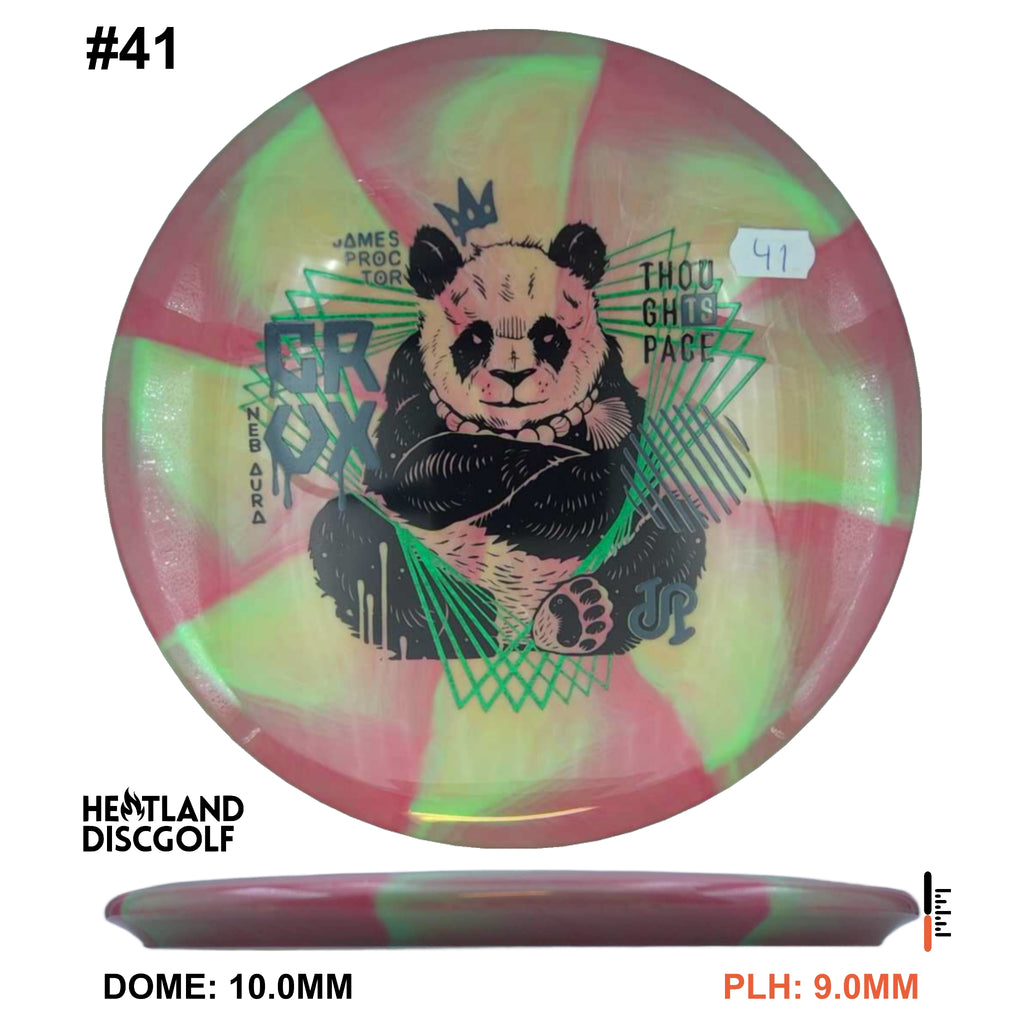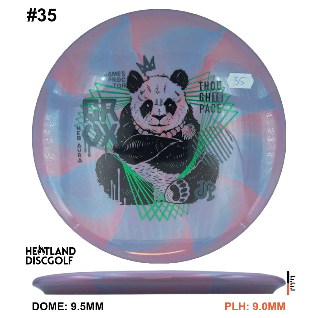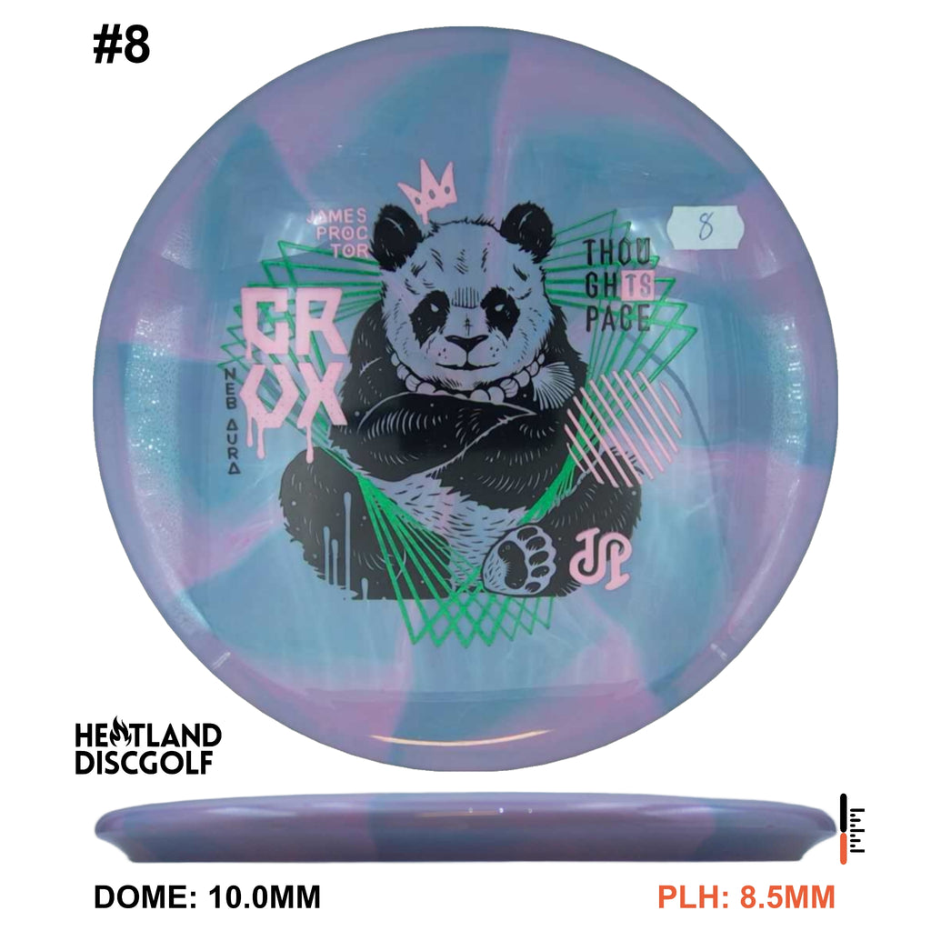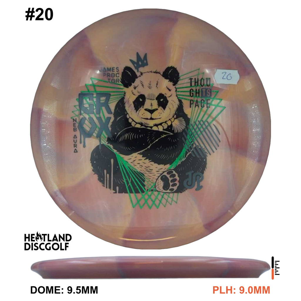 Nebula Aura is a special plastic blend with decorative swirls in bursty patterns. It has an opaque look with great durability and good grip, preferred for most drivers and throwers. The Signature edition is released in support of professional disc golfers with a portion of the sale price going directly to the player.