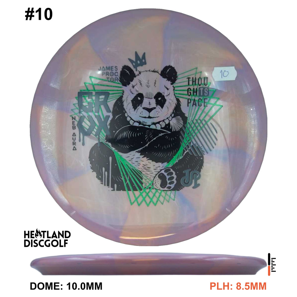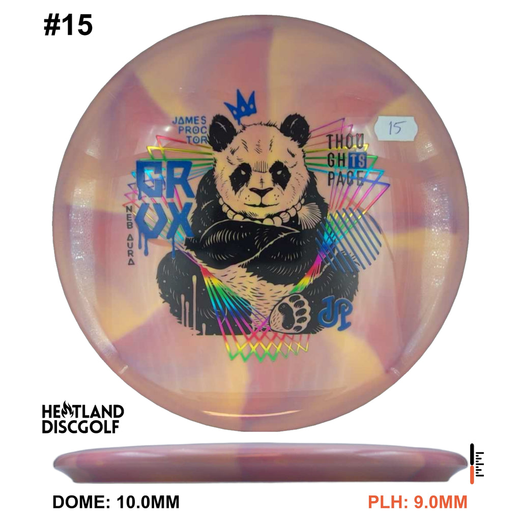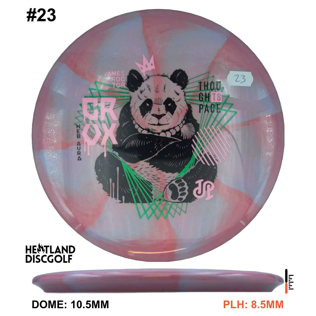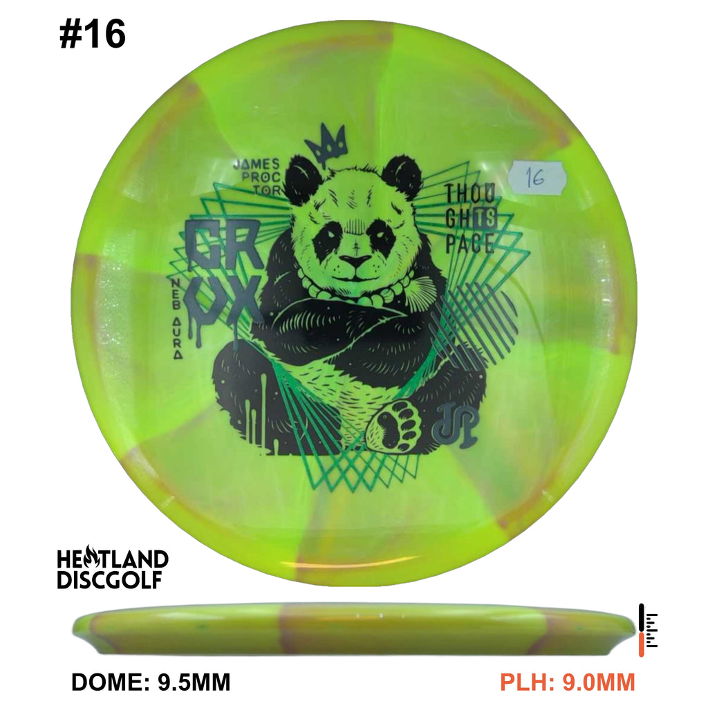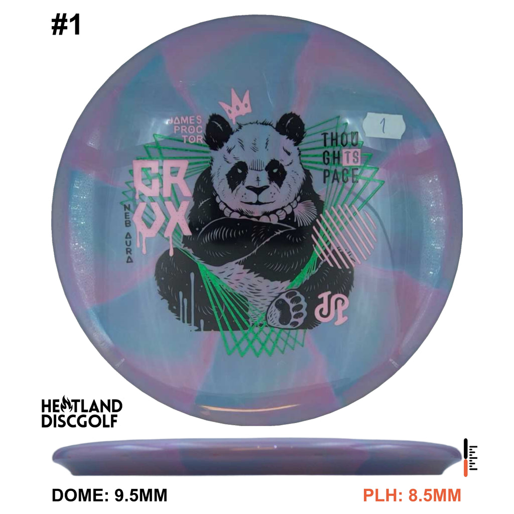 Nebula Aura is a special plastic blend with decorative swirls in bursty patterns. It has an opaque look with great durability and good grip, preferred for most drivers and throwers. The Signature edition is released in support of professional disc golfers with a portion of the sale price going directly to the player.