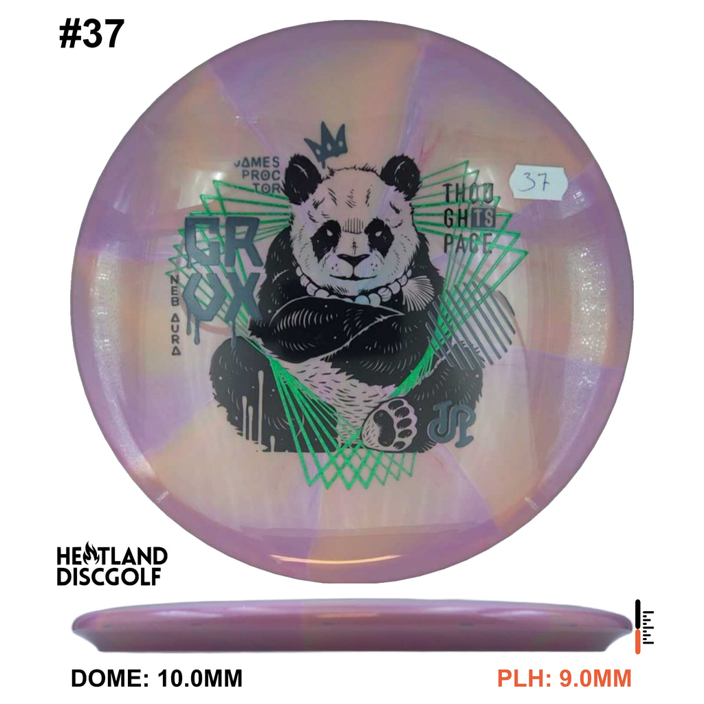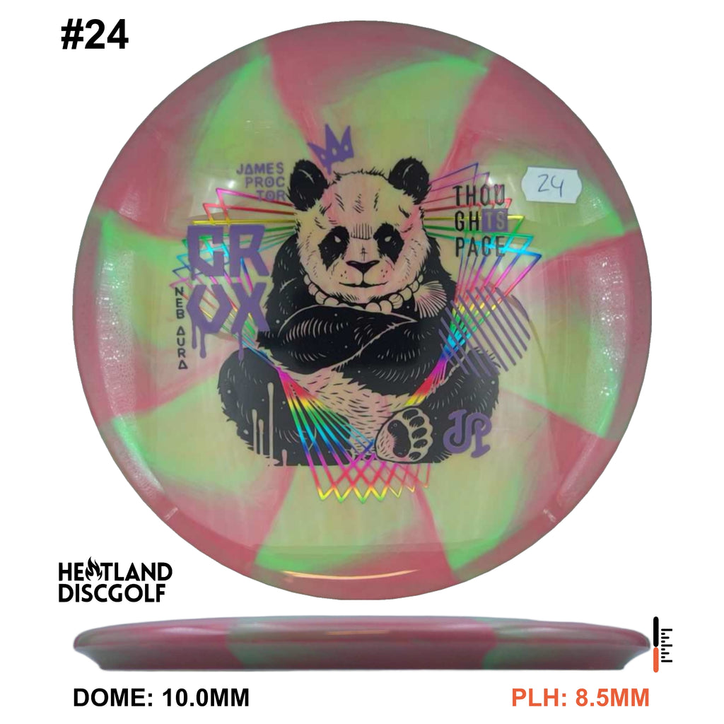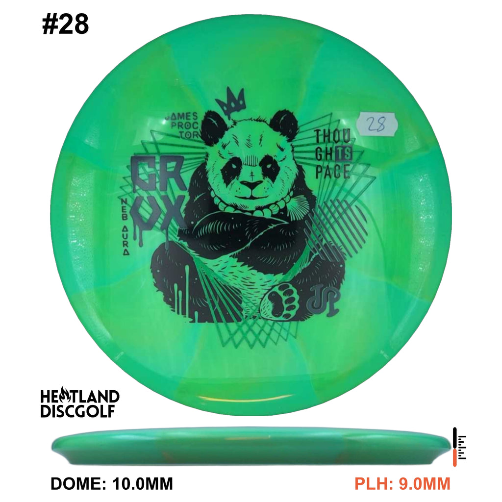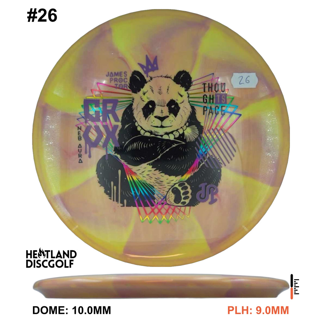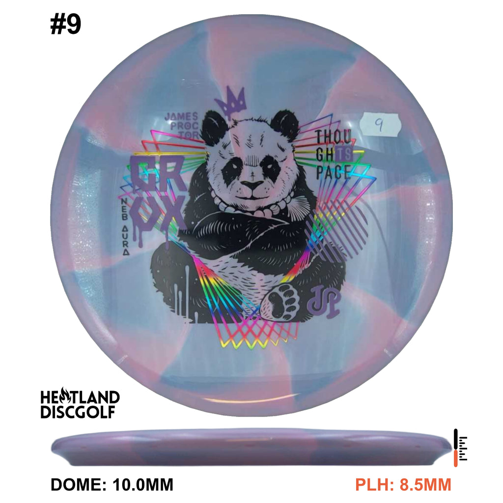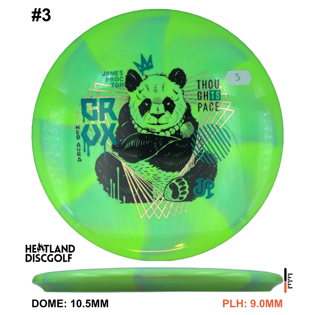 Nebula Aura is a special plastic blend with decorative swirls in bursty patterns. It has an opaque look with great durability and good grip, preferred for most drivers and throwers. The Signature edition is released in support of professional disc golfers with a portion of the sale price going directly to the player.