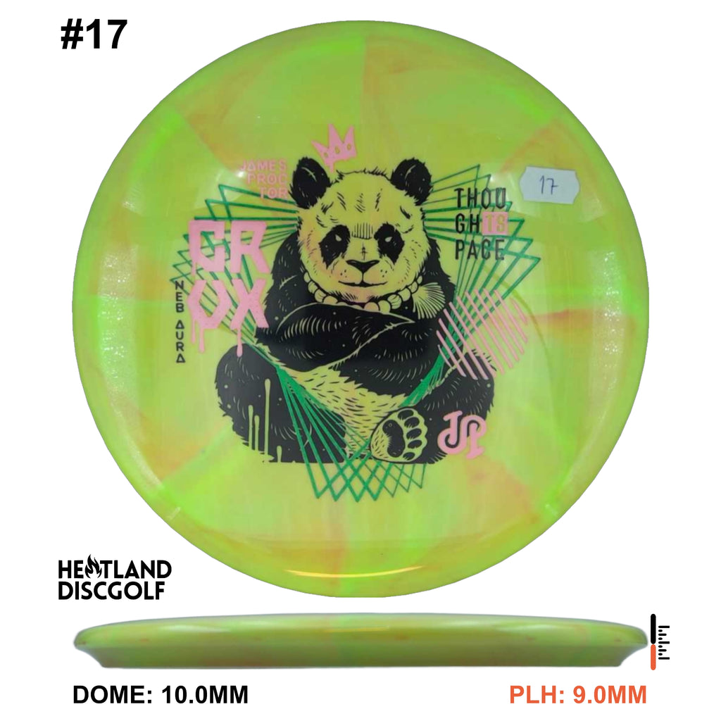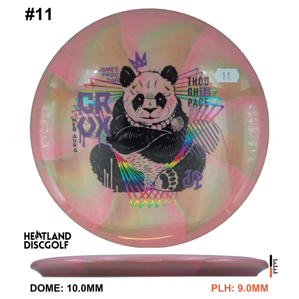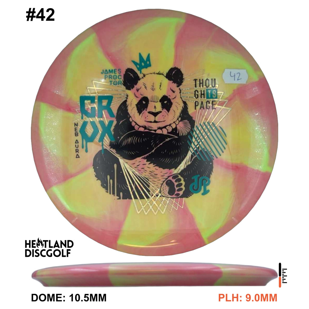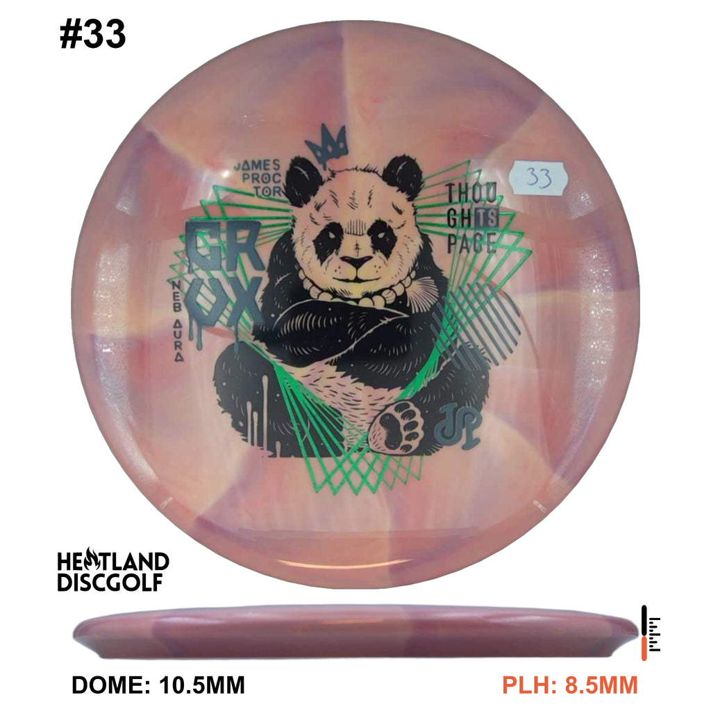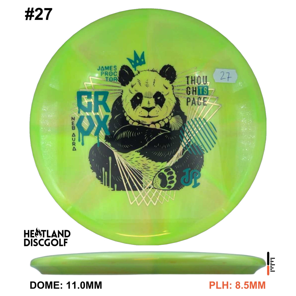 Nebula Aura is a special plastic blend with decorative swirls in bursty patterns. It has an opaque look with great durability and good grip, preferred for most drivers and throwers. The Signature edition is released in support of professional disc golfers with a portion of the sale price going directly to the player.