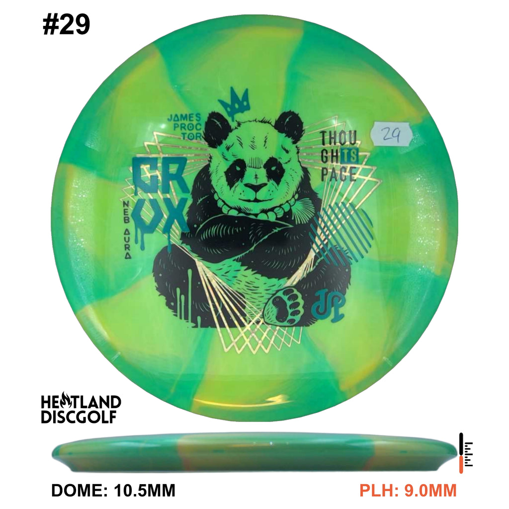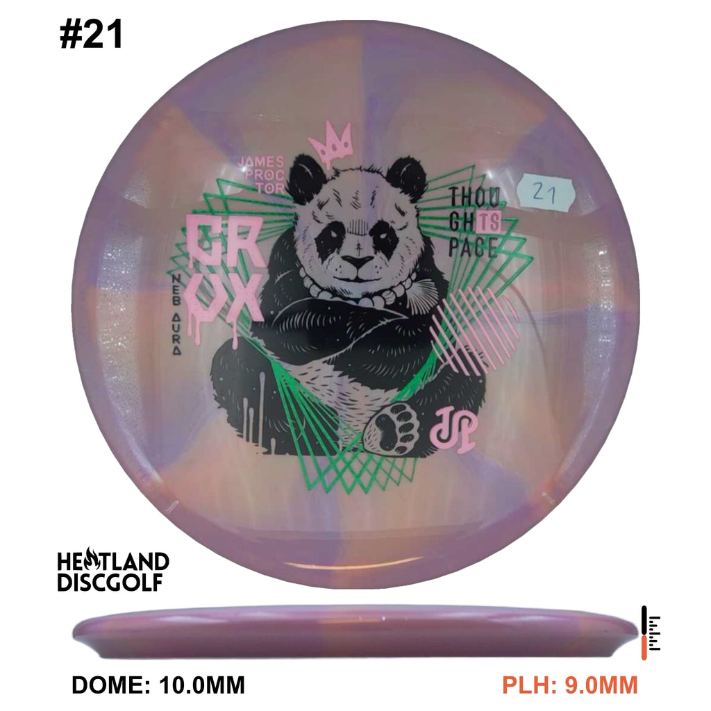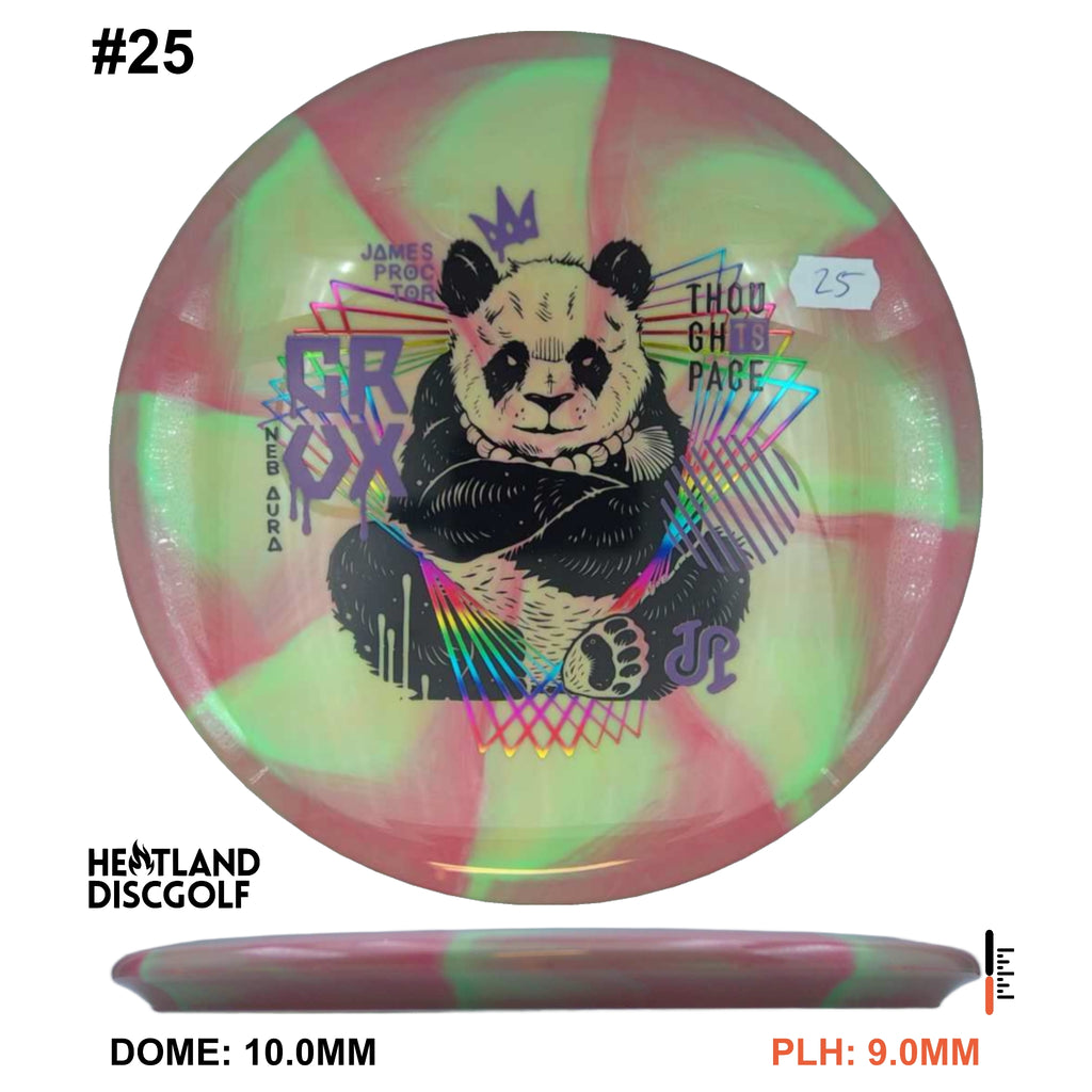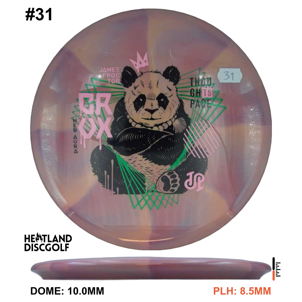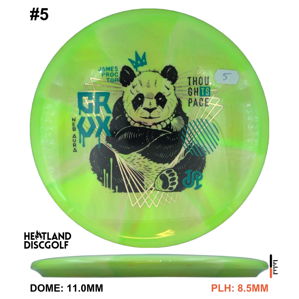Nebula Aura is a special plastic blend with decorative swirls in bursty patterns. It has an opaque look with great durability and good grip, preferred for most drivers and throwers. The Signature edition is released in support of professional disc golfers with a portion of the sale price going directly to the player.