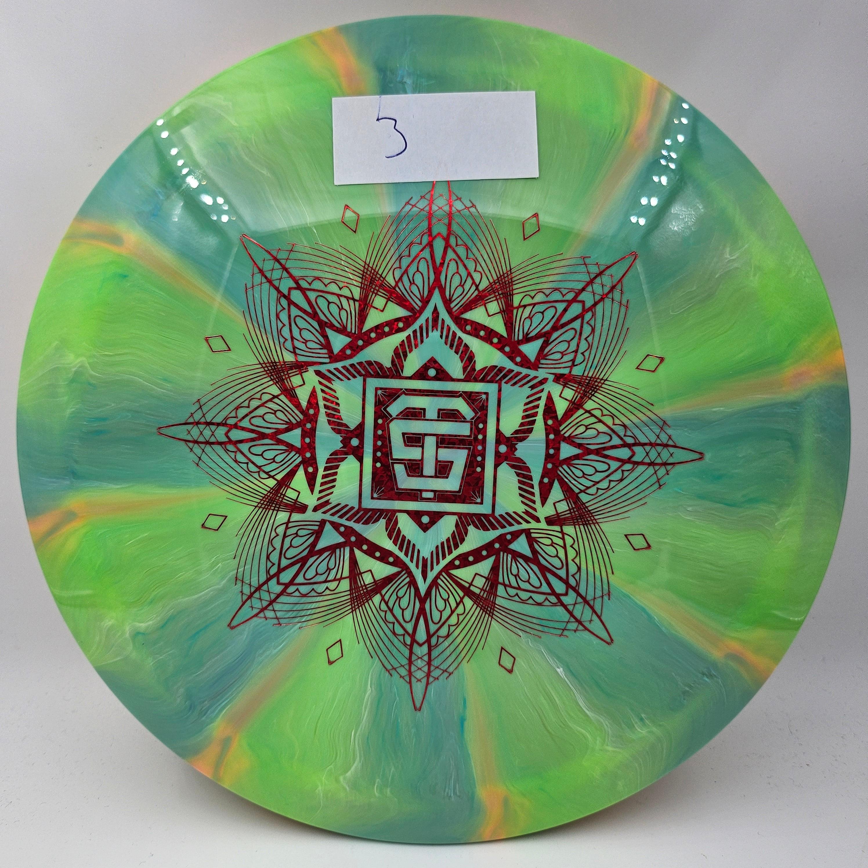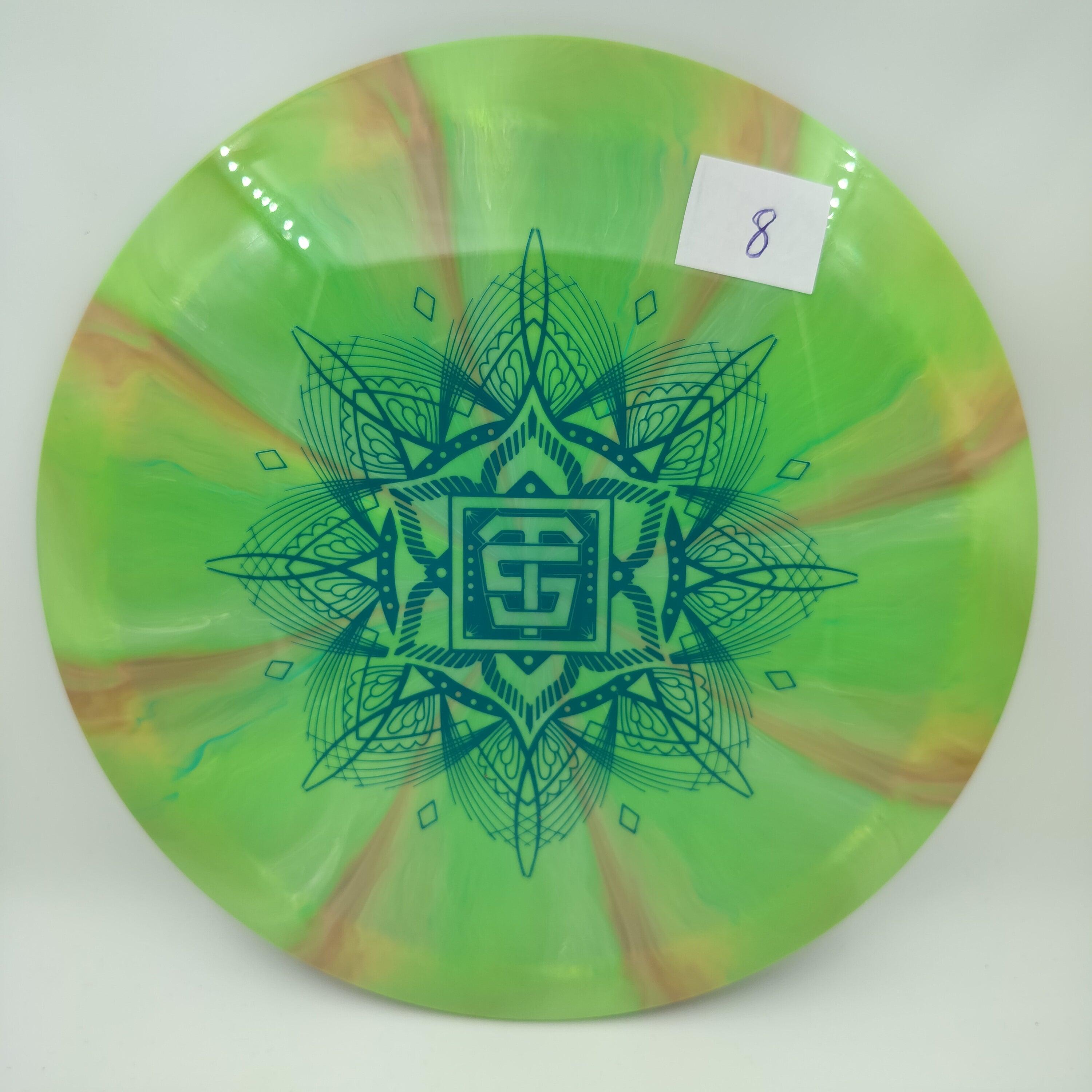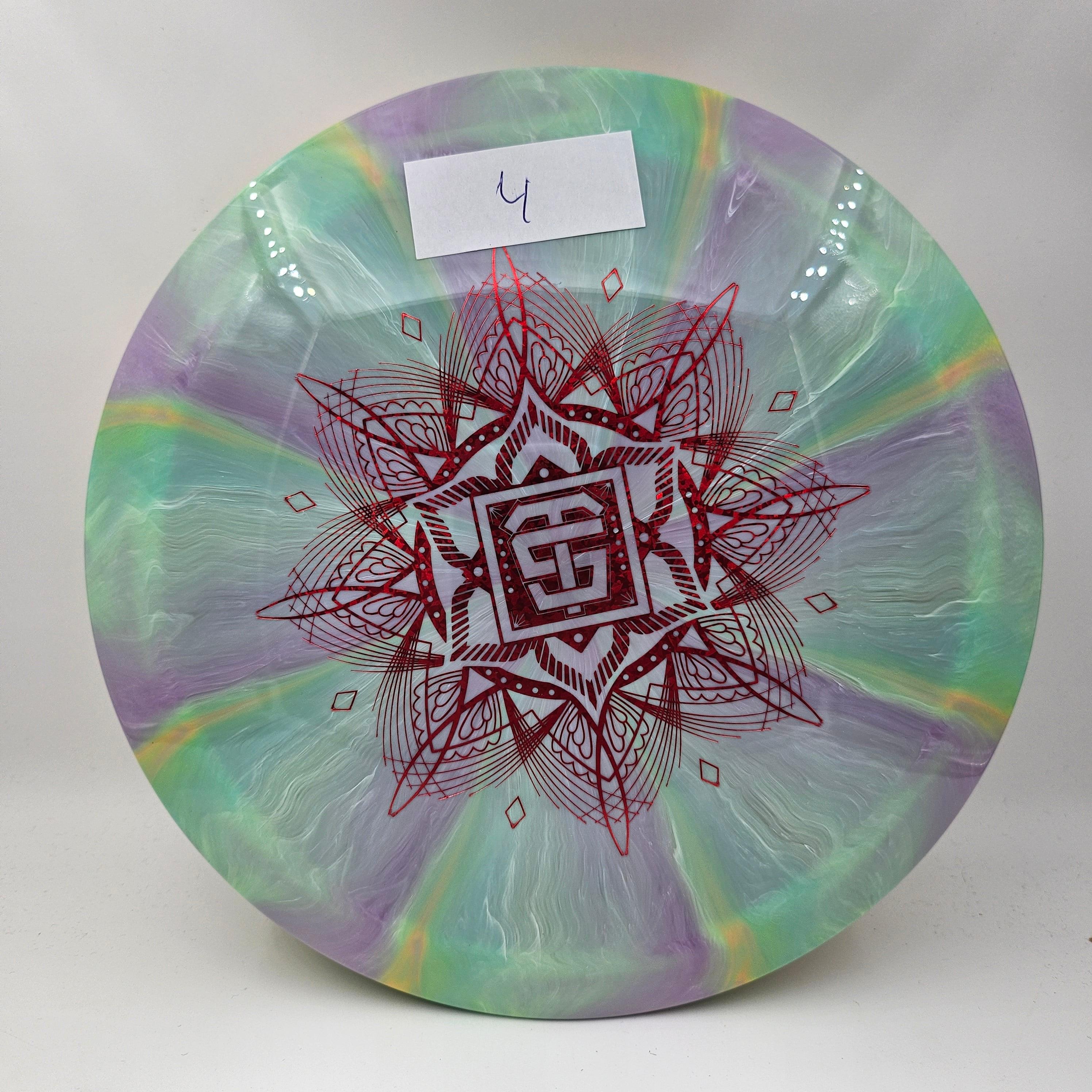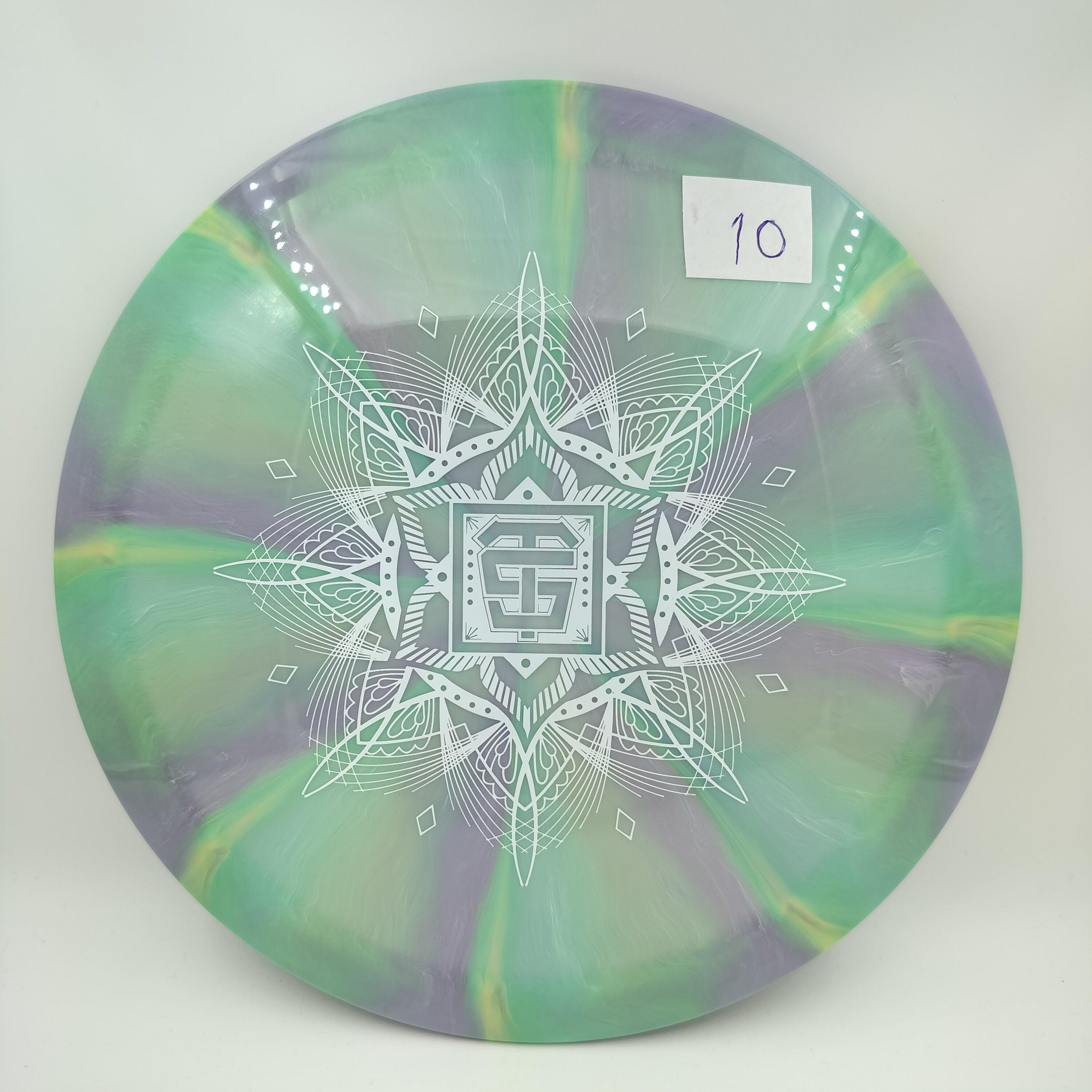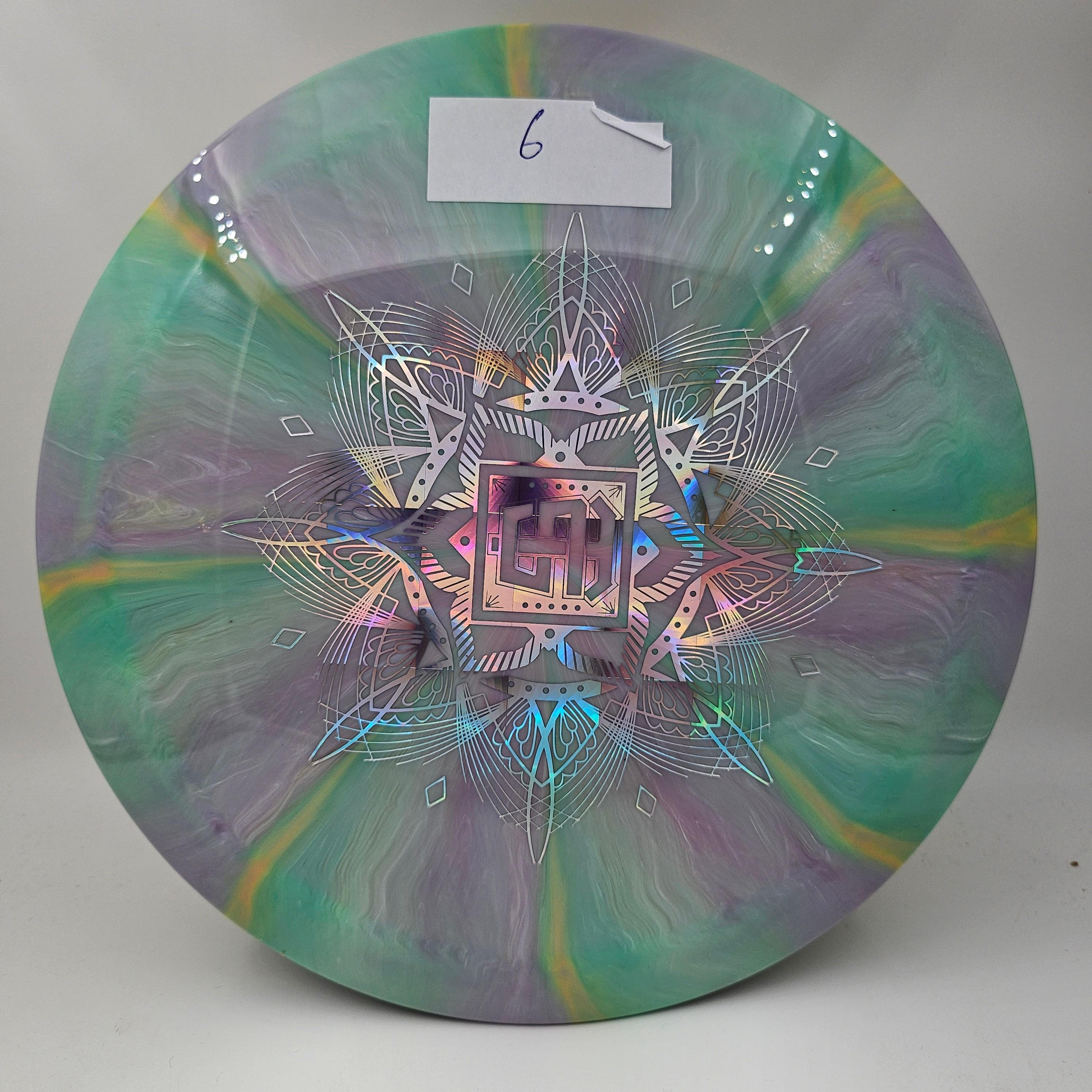 Nebula Aura is a special plastic blend with decorative swirls in bursty patterns. It has an opaque look with great durability and good grip, preferred for most drivers and throwers. The Signature edition is released in support of professional disc golfers with a portion of the sale price going directly to the player.