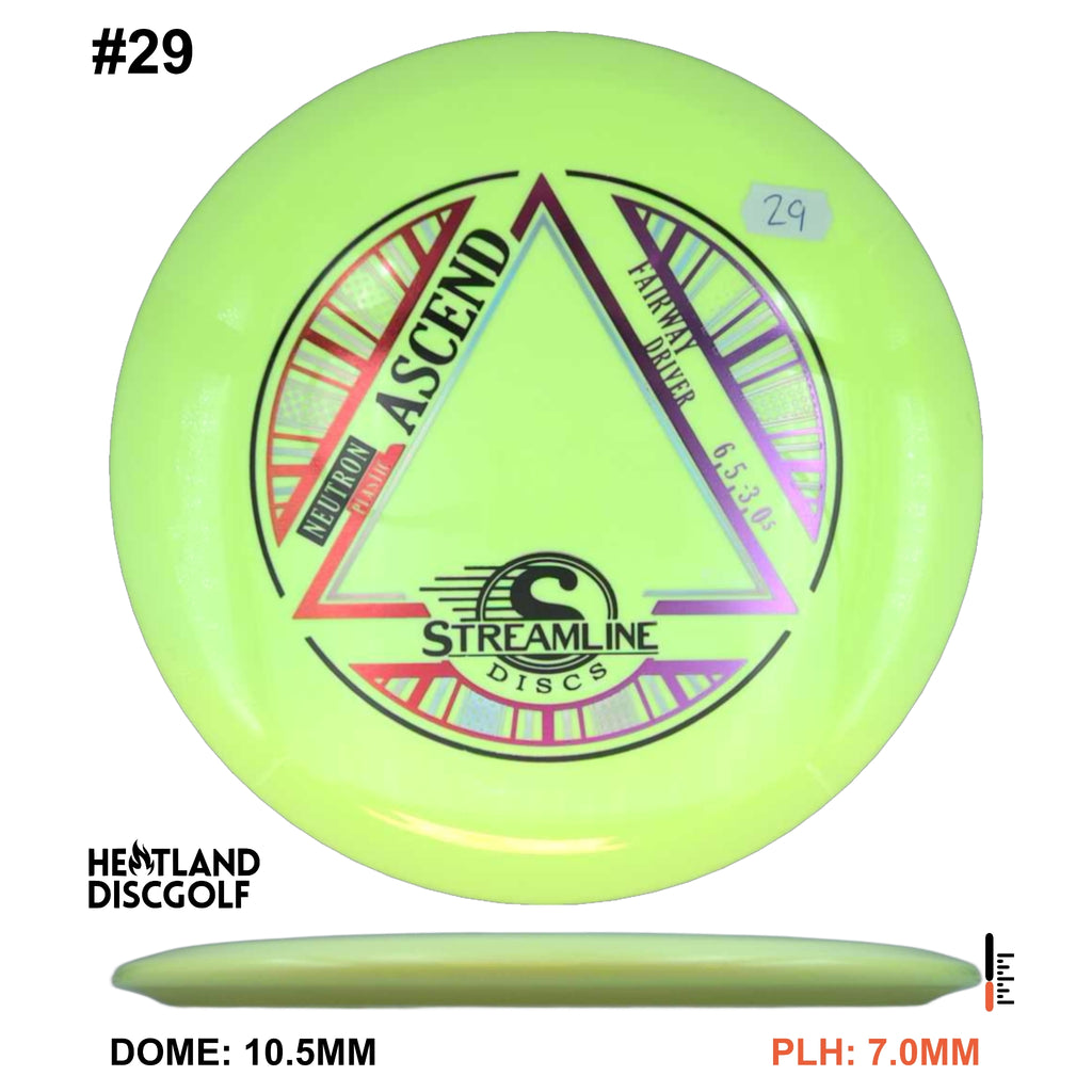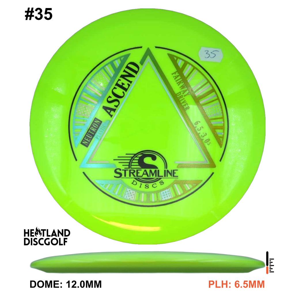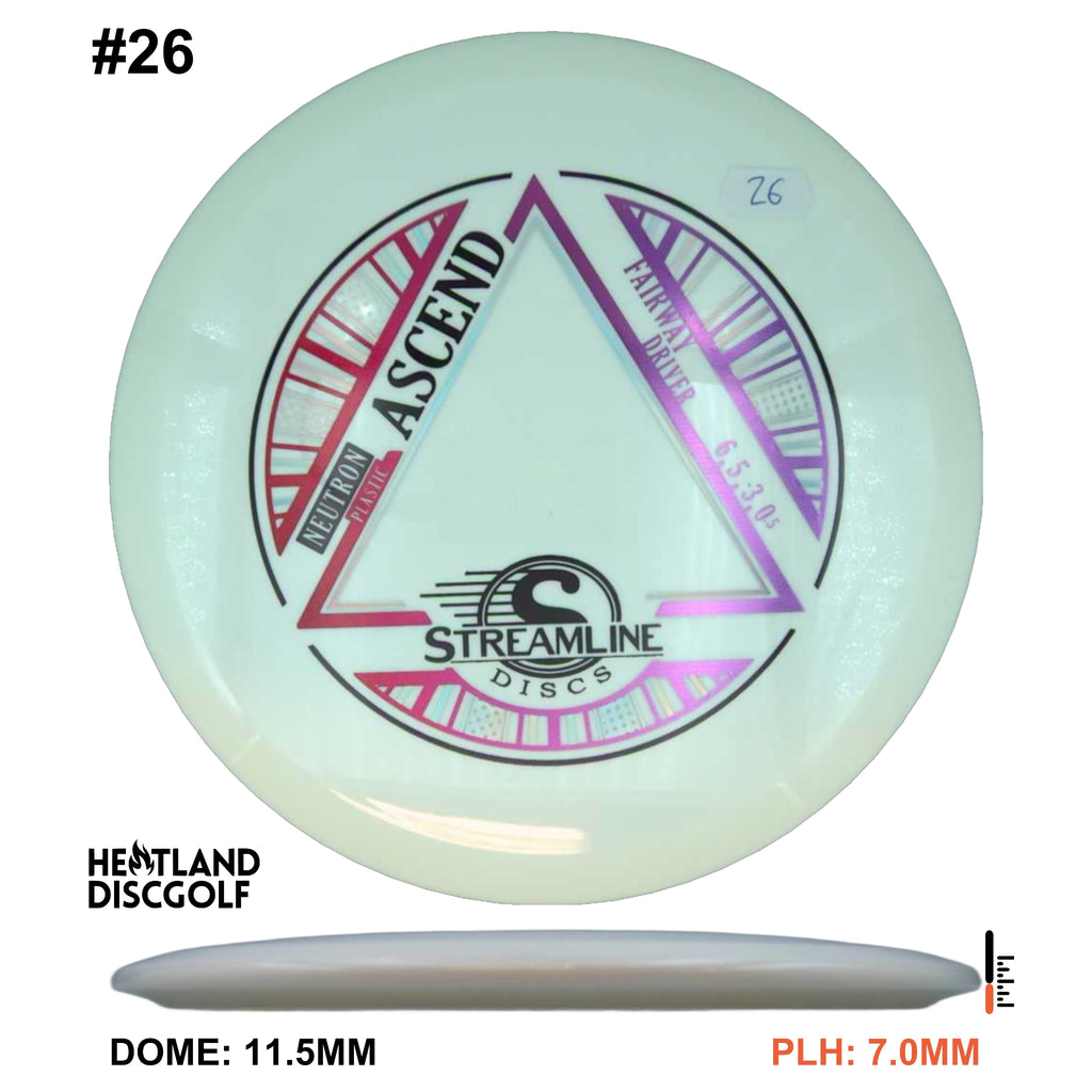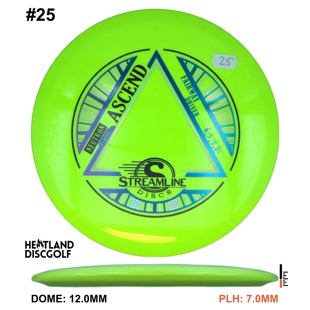 The Ascend is here to lift your understable fairway game to new levels! With a speed of 6, glide of 5, turn of -3, and a fade of 0.5, the Ascend is a truly understable fairway driver designed for players of all skill levels. Players who are learning the game will love the Ascend’s easily attainable straight flights and, thanks to its glide, surprising distance for a fairway driver. Experienced and higher power players will appreciate the controllable turn the Ascend has to offer — allowing them to carve a lot of lines from hyzer angles and launch massive turnovers. With that easy flight, comfortable feel in the hand, and the tremendous Streamline Neutron plastic, the Ascend will find a place in any bag!