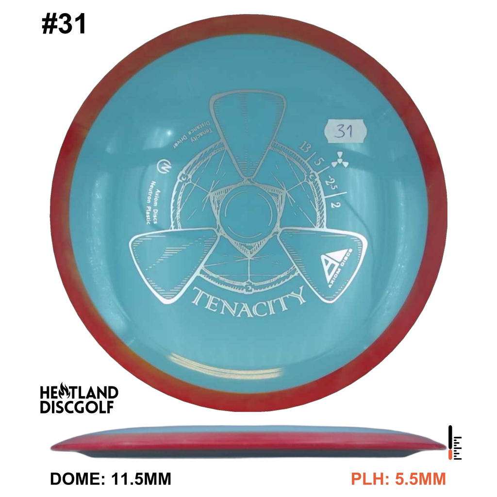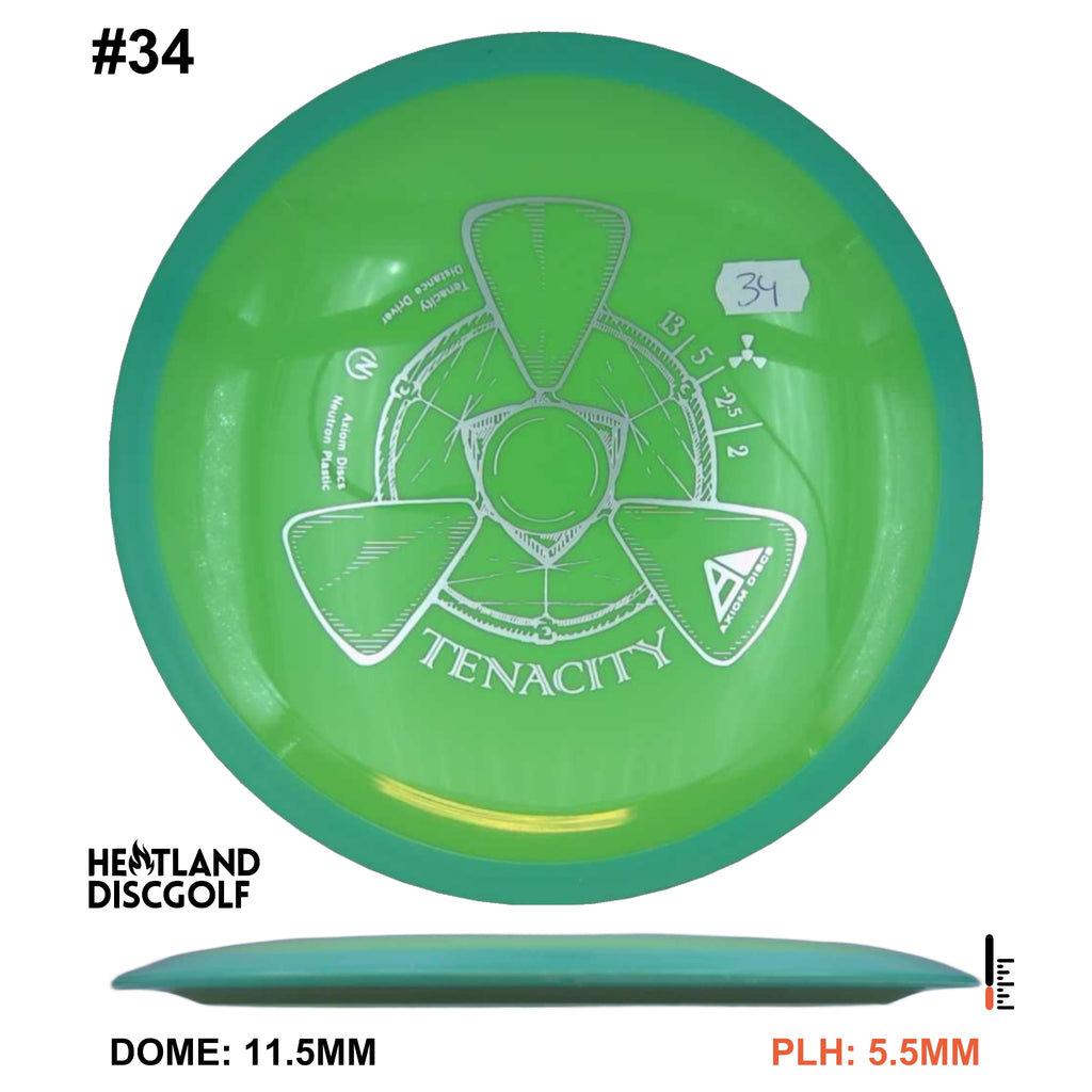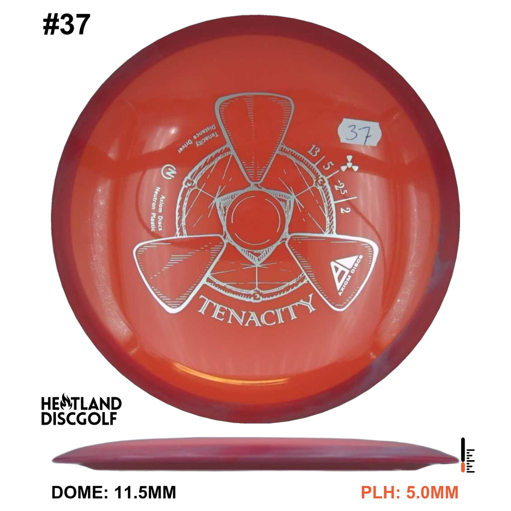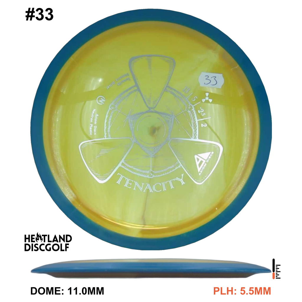 The Tenacity is Axiom Discs understable bomber in the 23mm class drivers. Axiom describes the Tenacity as "sneaky long", with an understable flight path. This disc is a step more understable than the Mayhem.