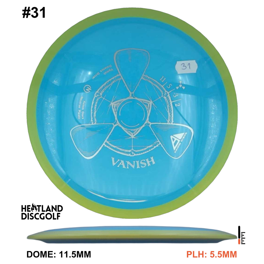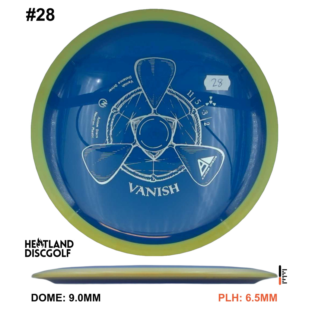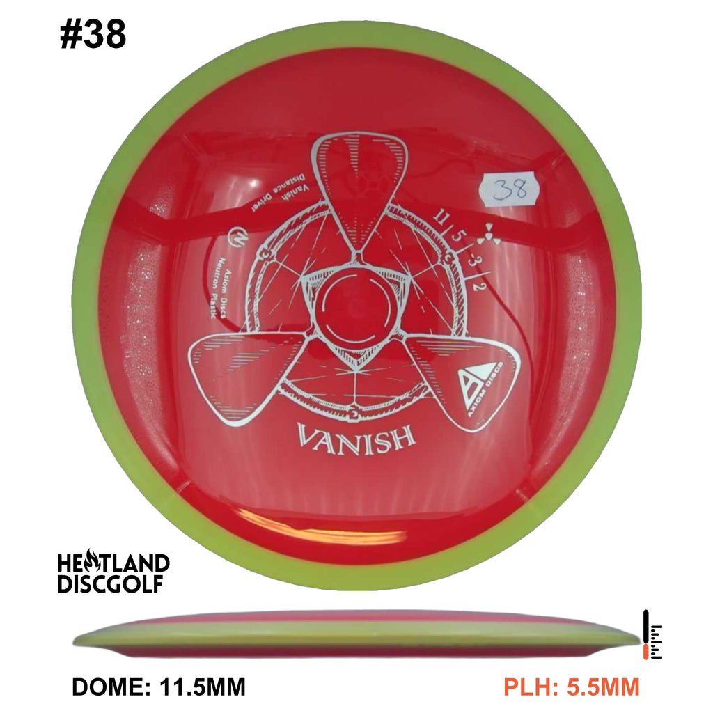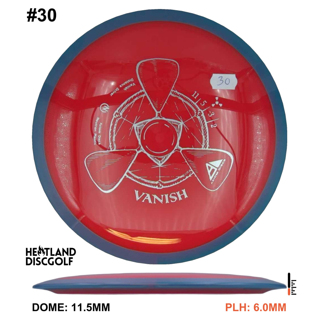 The Vanish is a straight to understable disc depending on the thrower and wind conditions. The Vanish's stability profile places it near a threshold of being straight at low power or in tailwinds, and controllably understable at high power or in mild headwinds. As a 21.5mm class GYRO™ driver, the Vanish is designed to hit a midpoint of stability between two MVP Disc Sports models, the Wave and Orbital. The Vanish will debut in grippy opaque dual-color Neutron plastic.