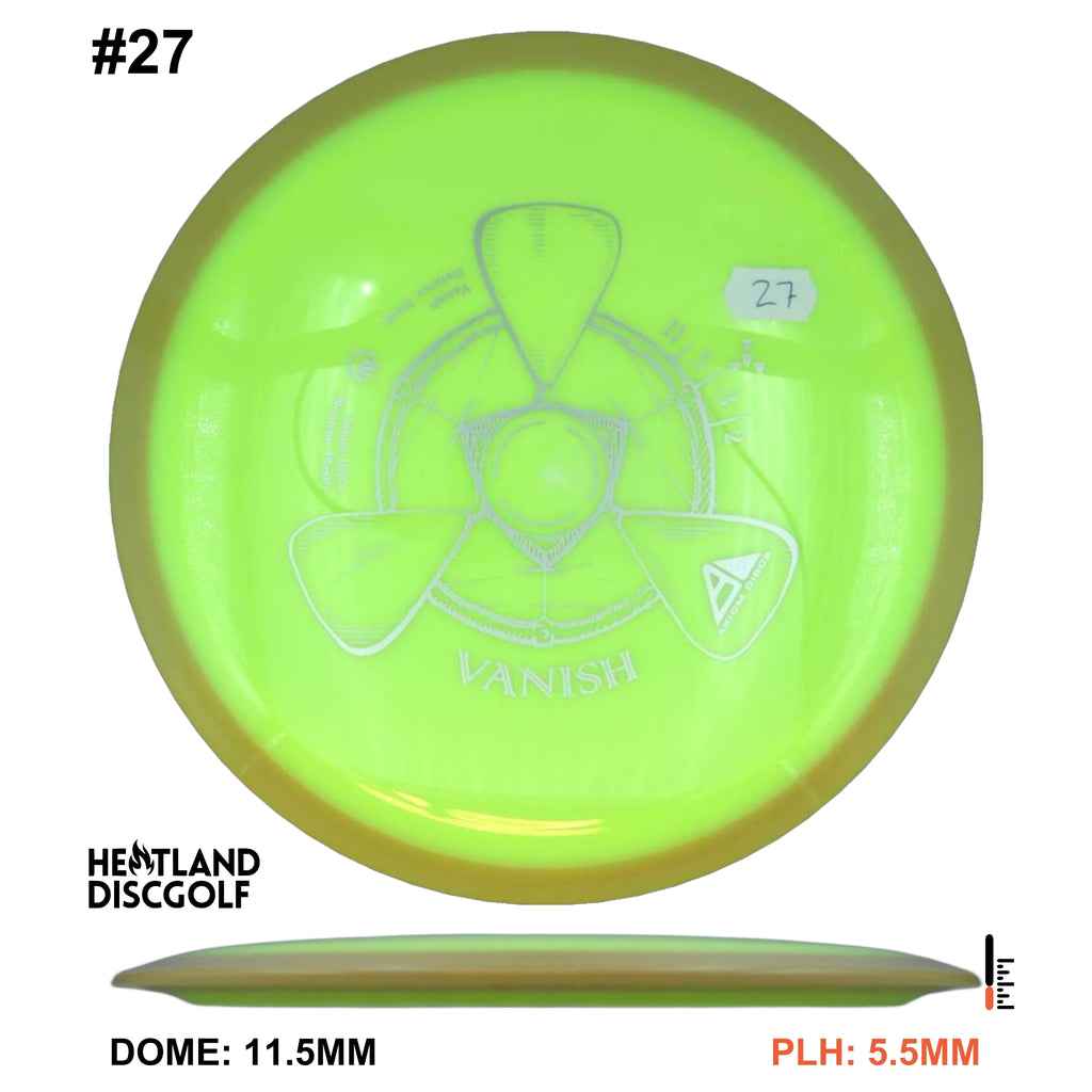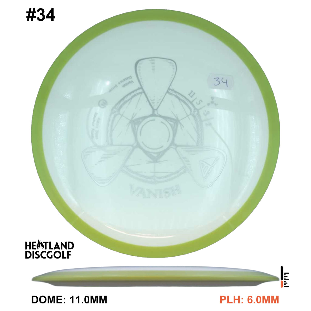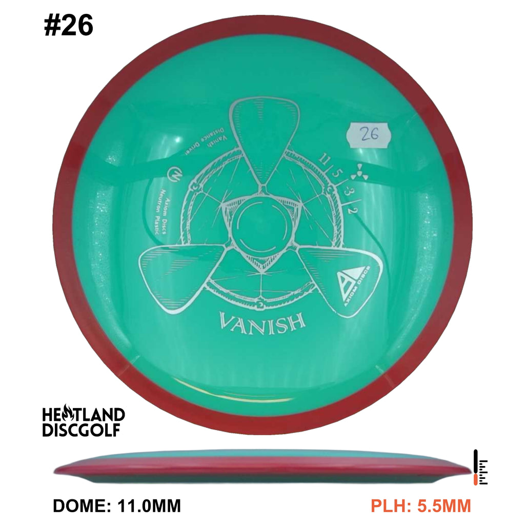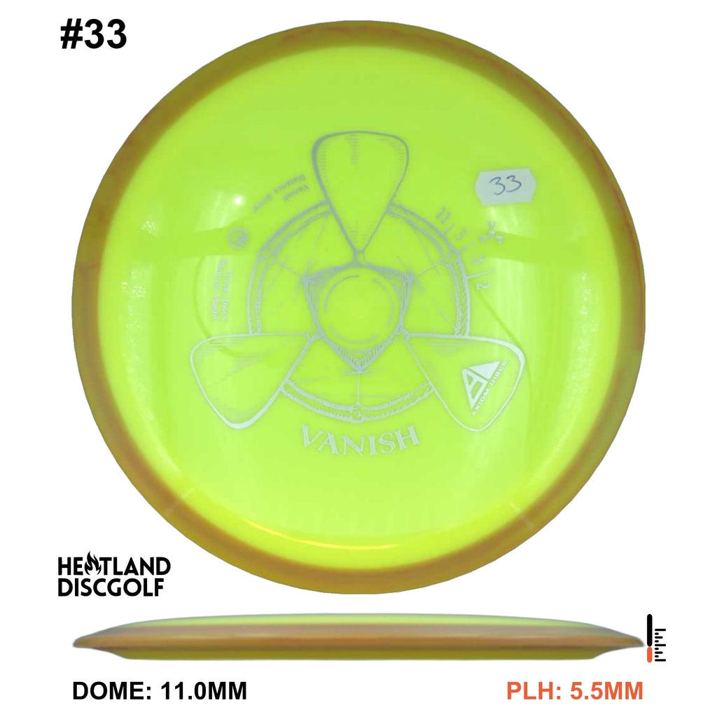 The Vanish is a straight to understable disc depending on the thrower and wind conditions. The Vanish's stability profile places it near a threshold of being straight at low power or in tailwinds, and controllably understable at high power or in mild headwinds. As a 21.5mm class GYRO™ driver, the Vanish is designed to hit a midpoint of stability between two MVP Disc Sports models, the Wave and Orbital. The Vanish will debut in grippy opaque dual-color Neutron plastic.