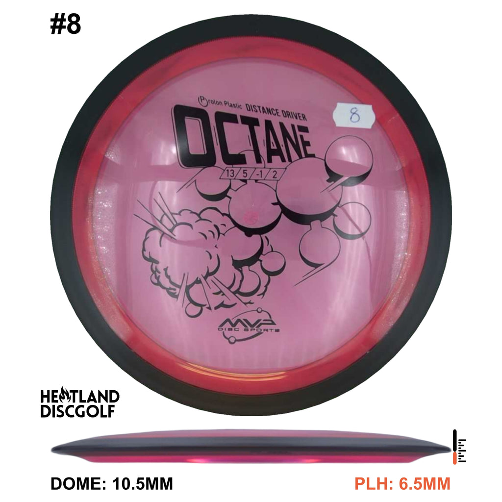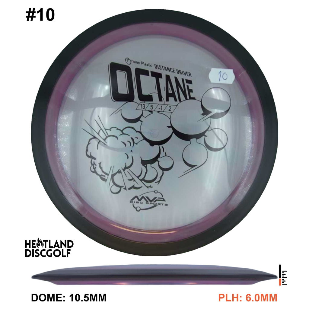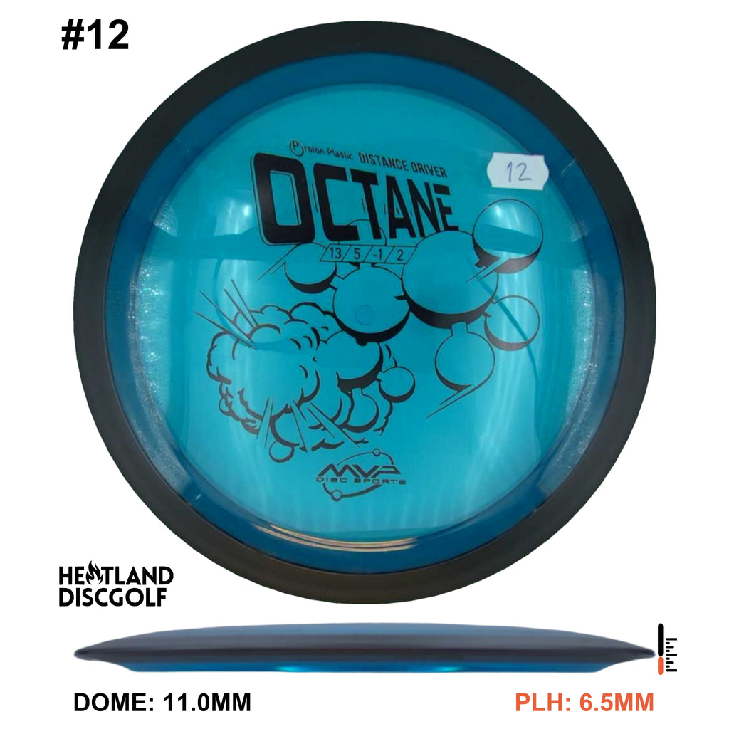 Octane falls in the general stability lineage of Switch, Amp, Inertia, and Wave, with a slow-turning profile that holds long and straight until its fade finish. The 23mm Octane is designed to be relatively less understable than its 21.5mm counterpart Wave. Average throwers should see straight flights with a bit of shallow turn, while power throwers will be able to hyzerflip for max distance and tailwind lines.