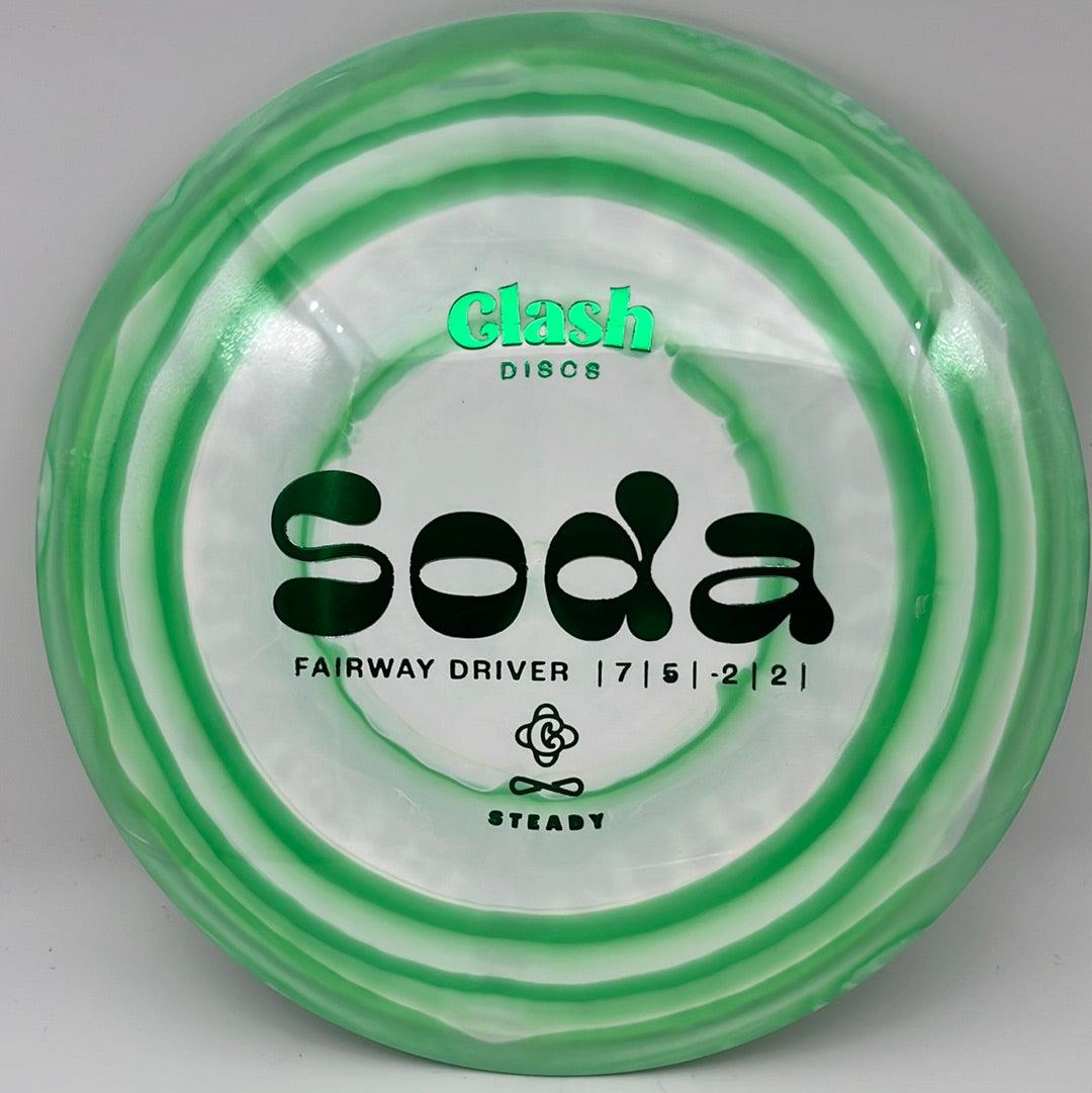 The Soda is an understable fairway driver. We designed the disc to function in a way that it can shape multiple flight paths in the woods. It is the perfect disc for beginners as their first distance driver due to its slower speed and long glide. Advanced players can easily turn the disc over or hyzer-flip it to straight to navigate the wooded fairways.
