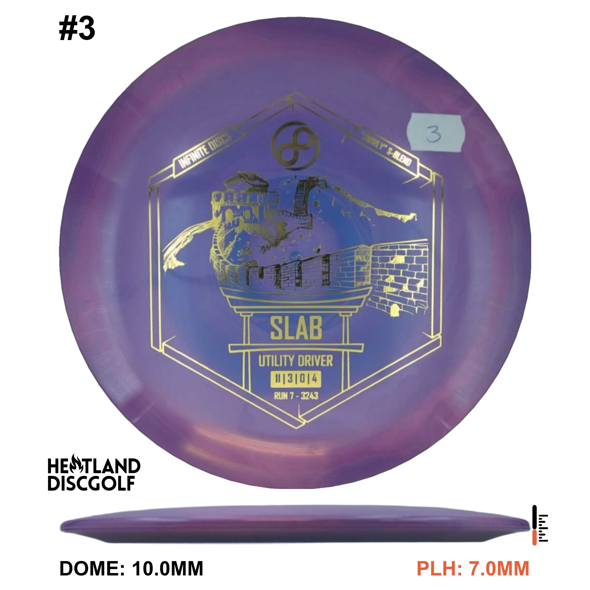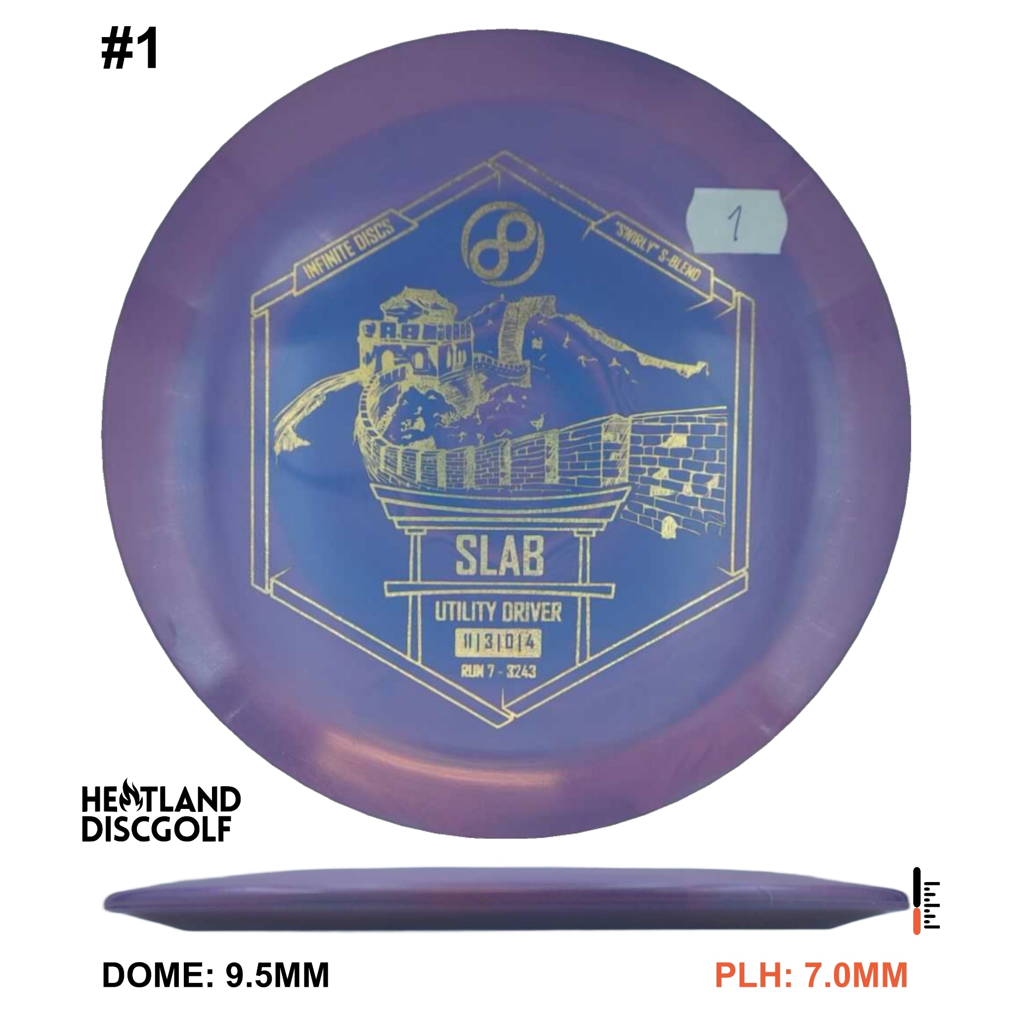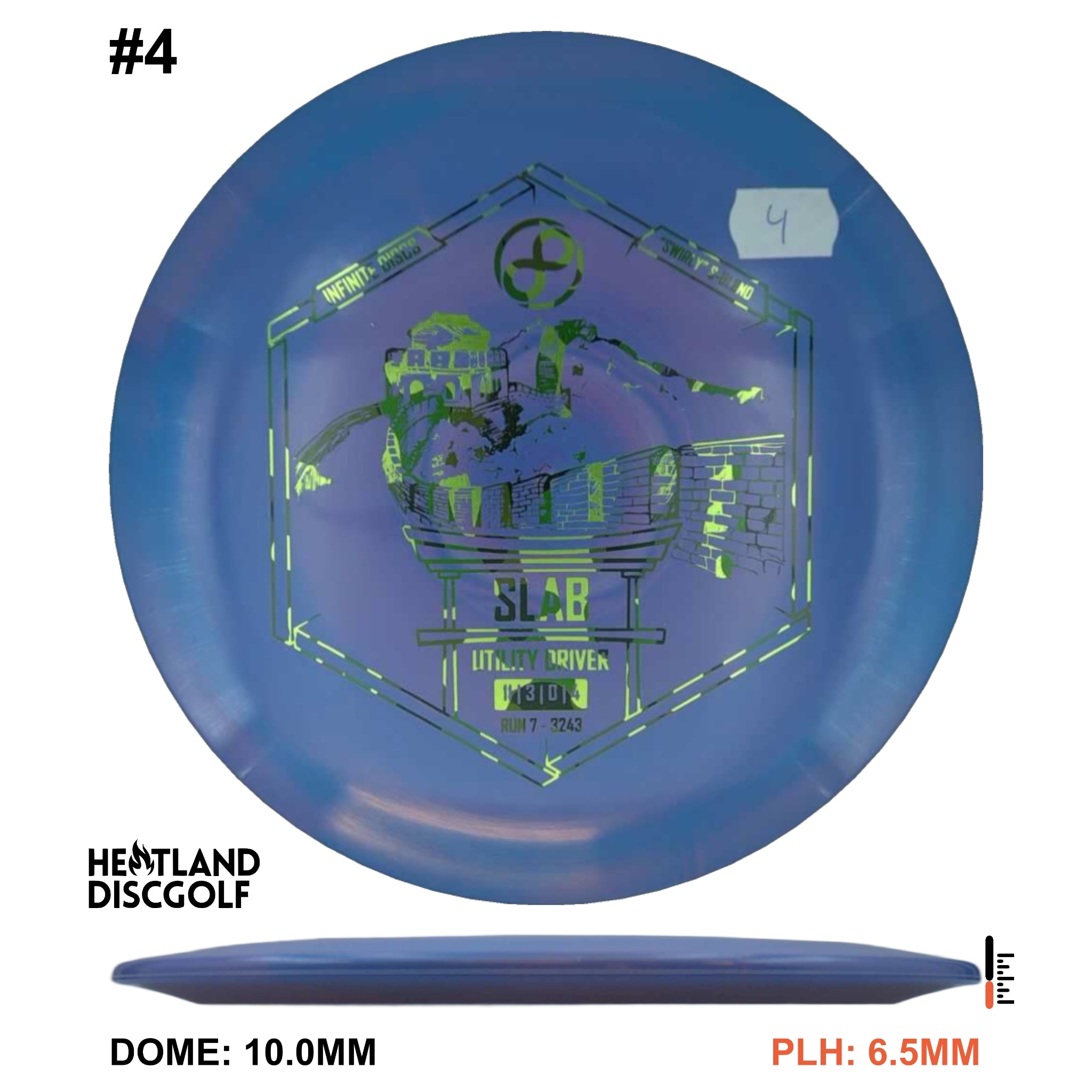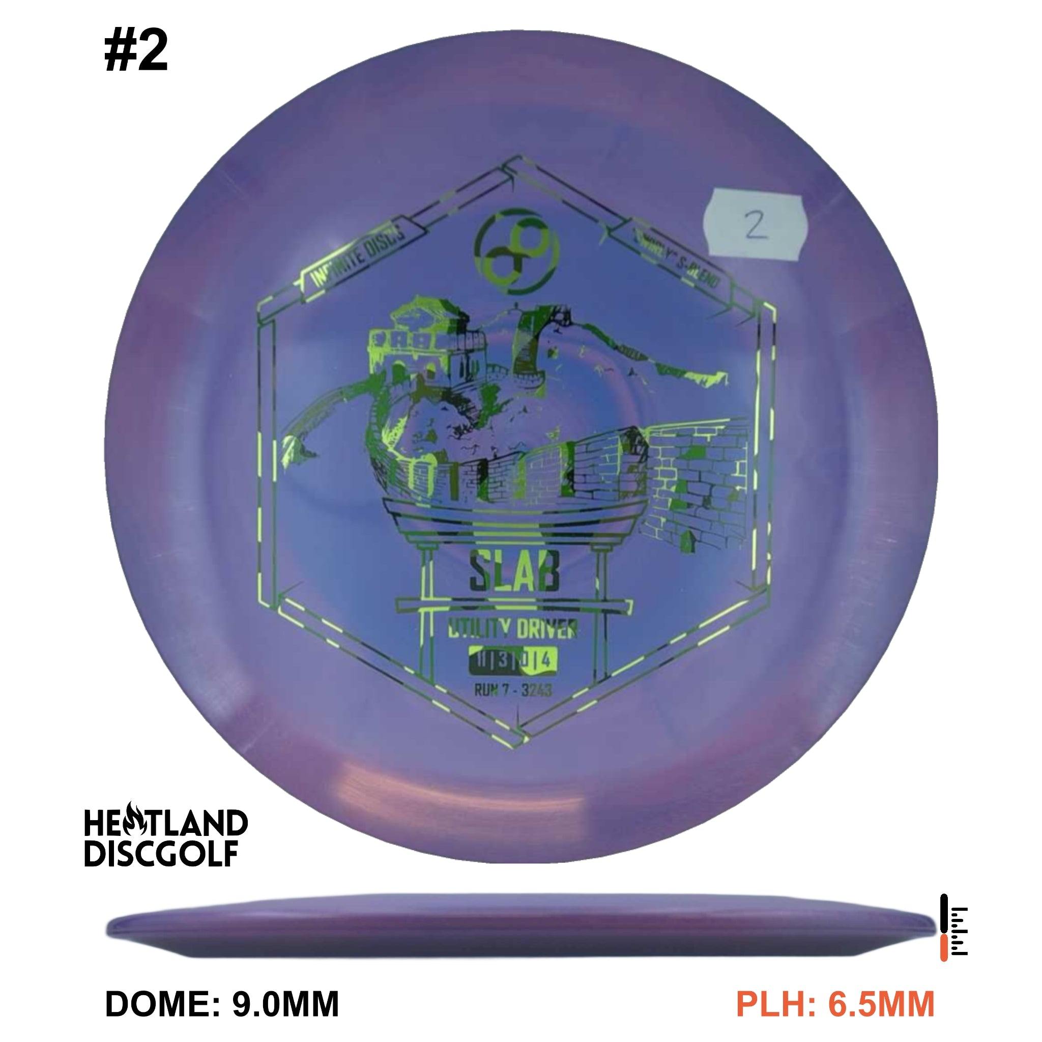 The SLAB is a high-speed, very overstable distance driver with a flat top and wide rim. The SLAB is designed for power throwers who want a disc that still fades, no matter how hard it is thrown. This disc works wonders for spike hyzer throws, strong forehand throws, as a wind fighter, or as a utility disc when you need to fade hard around obstacles. Watch the Slab slice dependably through the air under any conditions.