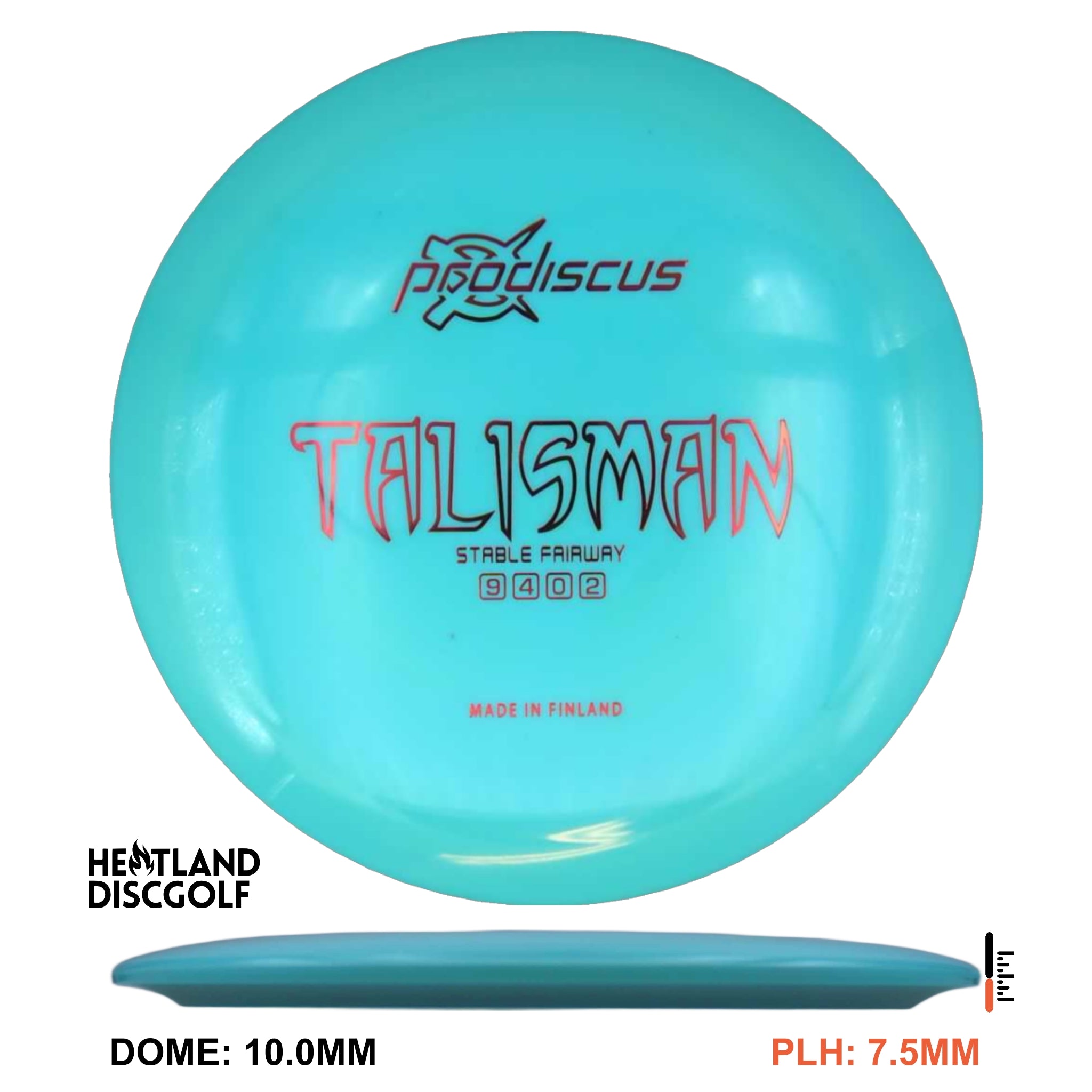The Prodiscus Talisman is a powerful and dependable fairway driver with an overstable flight that inspires confidence in any player's game. Its name, "Talisman," represents the good luck and protection it brings to those who throw it, and with its exceptional control and reliable fade, it's sure to become a treasured addition to your disc golf bag.