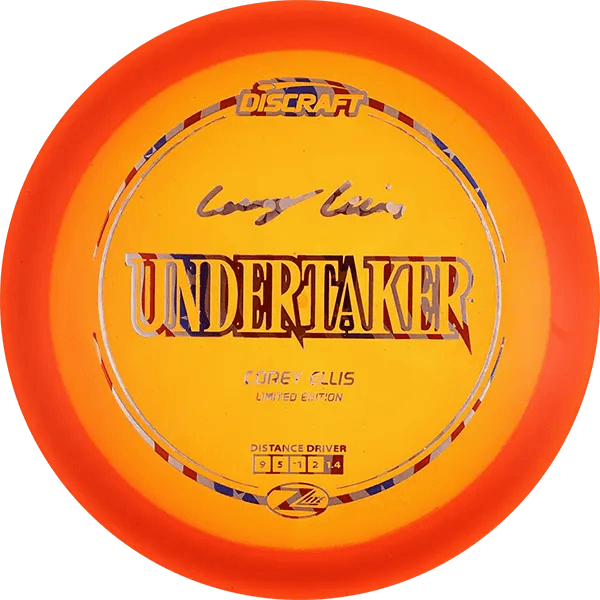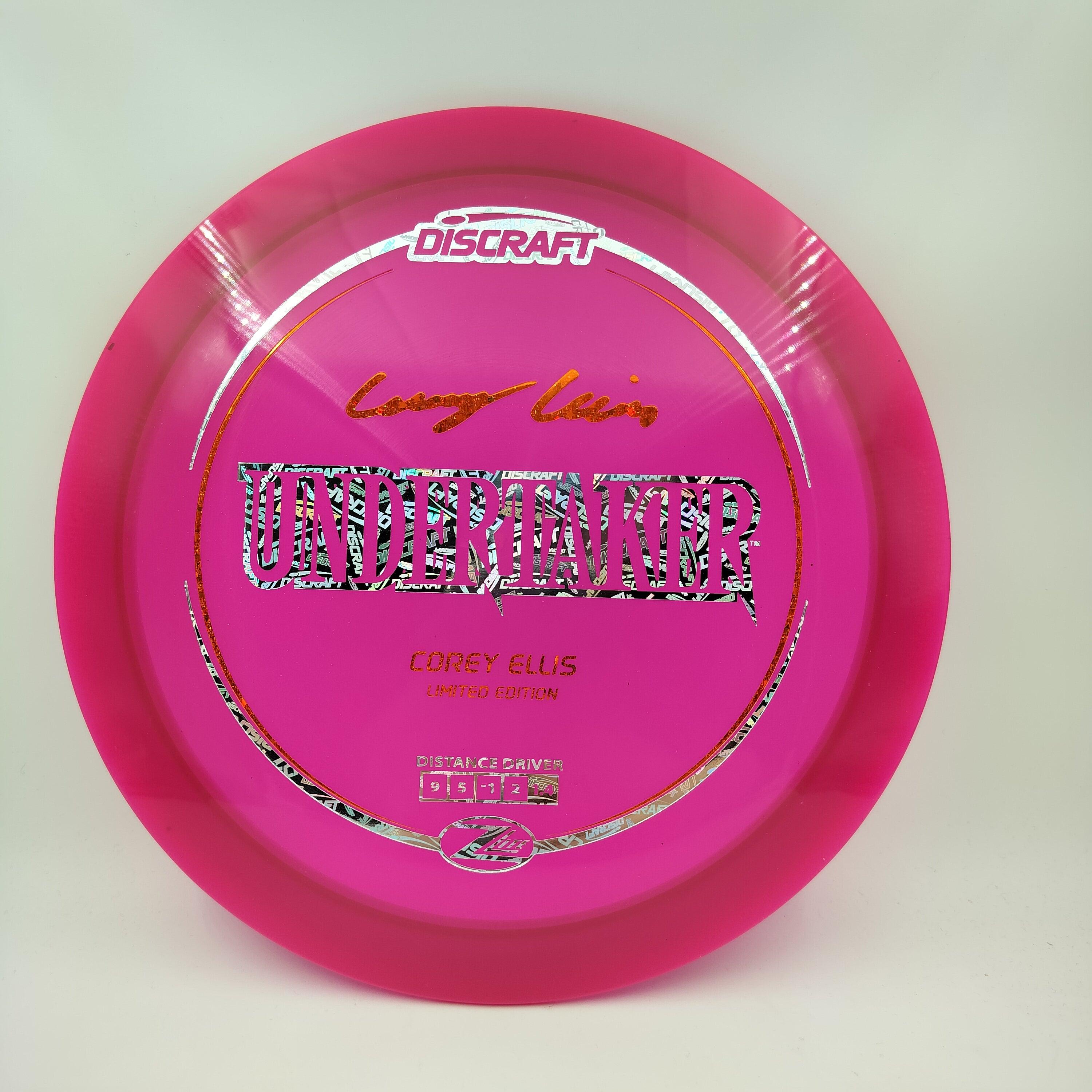 Description: The Undertaker is a straight to stable fairway driver that is a staple in the bag of many Discraft pros, including Paige Pierce. These Z Undertakers are stamped with the PP logo at 2 o'clock.