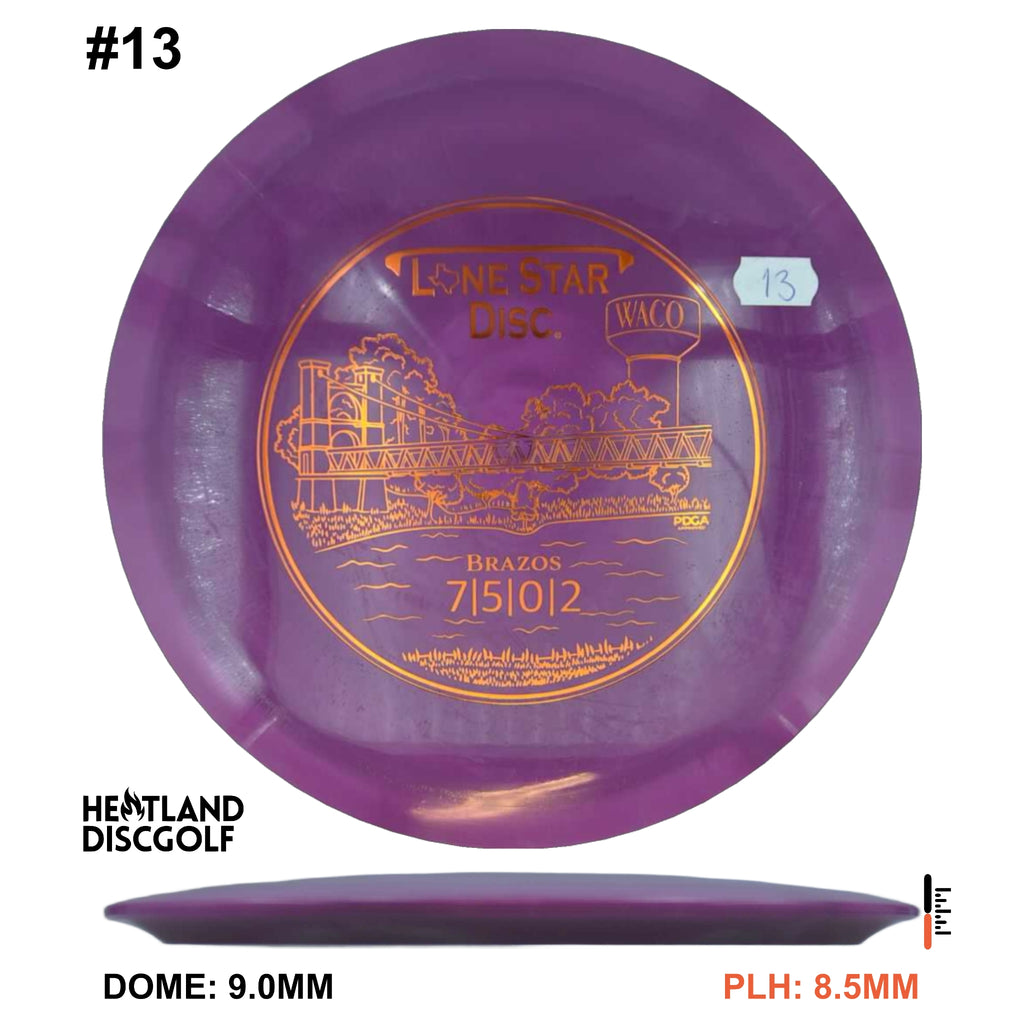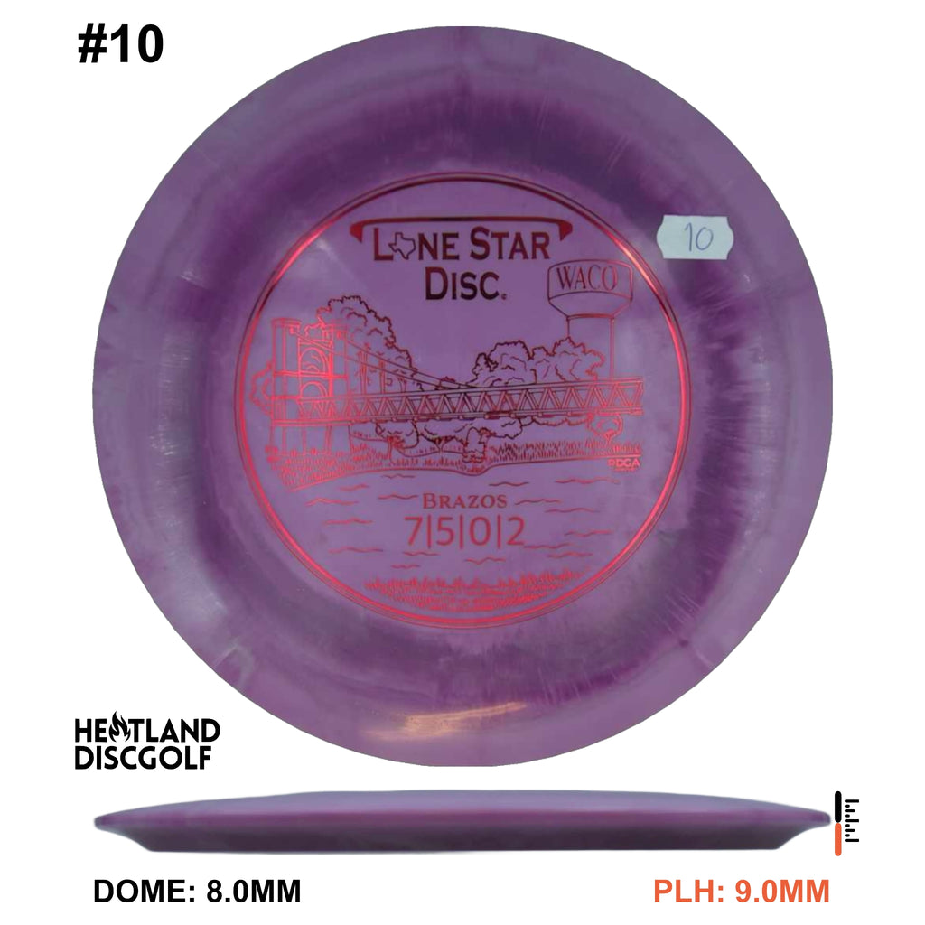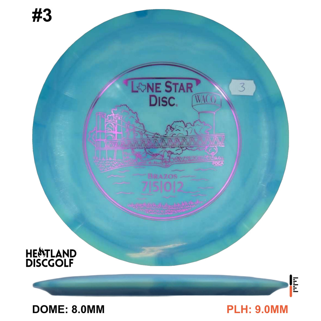This moderately stable Fairway Driver is ideal for faster and slower arms alike. Thrown at slower speeds, the Brazos promises reliable fade. Thrown at higher speeds, it's useful for long, slow-moving flex lines - an ideal overstable counterpart to the Frio.