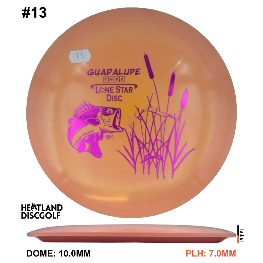 The Guadalupe is an ultra glidey woods carving disc made for anyone to feel comfortable using! It has a unique shape and feel in the hand that allow it to turn with a reliable fade at the end of it's flight. The Guadalupe will be available in Alpha, Bravo, and Glow plastic.