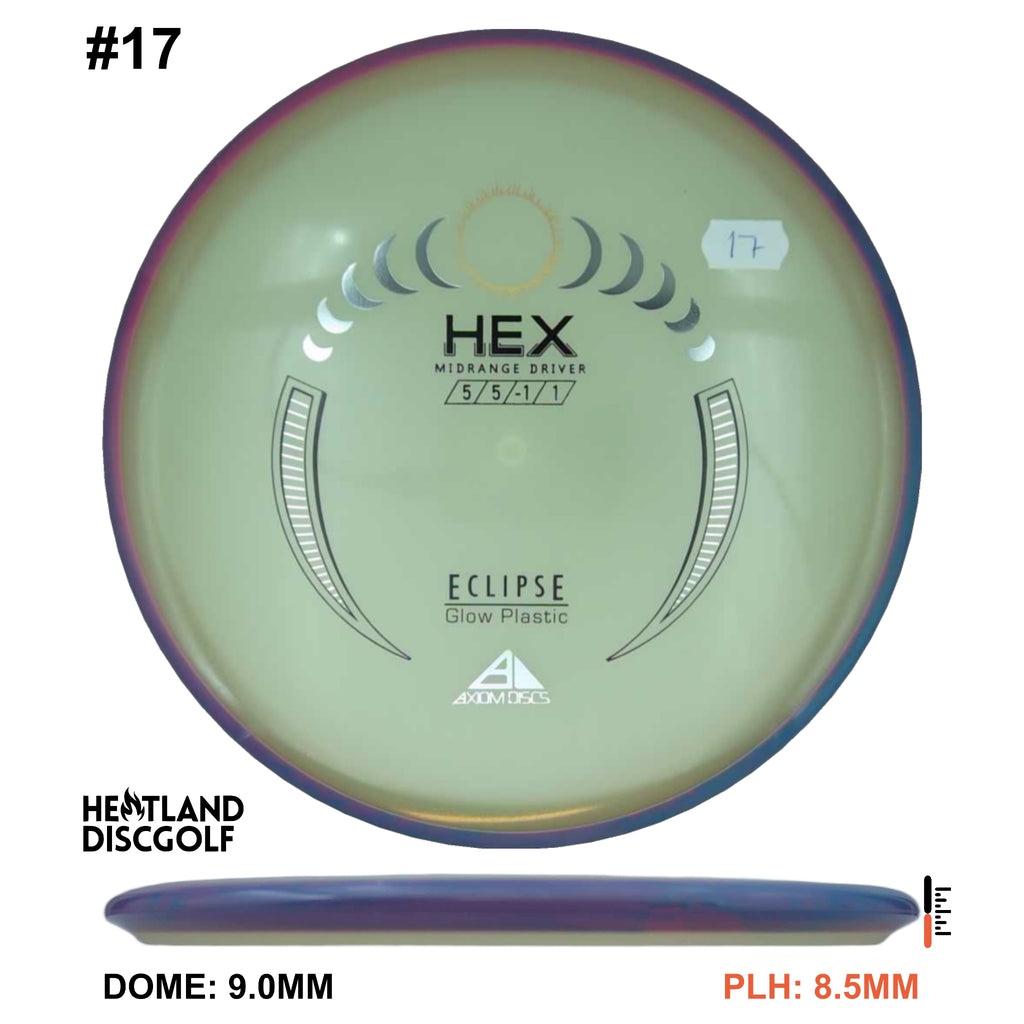 The Hex is a straight flying midrange, designed to fit into anyone's bag. For the advanced player and those who can throw hard, this will result in a slightly understable disc. For a beginner or intermediate player with lower arm speed, this will be a stable disc that can hold most lines.