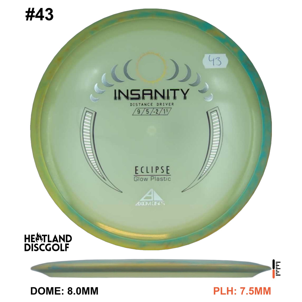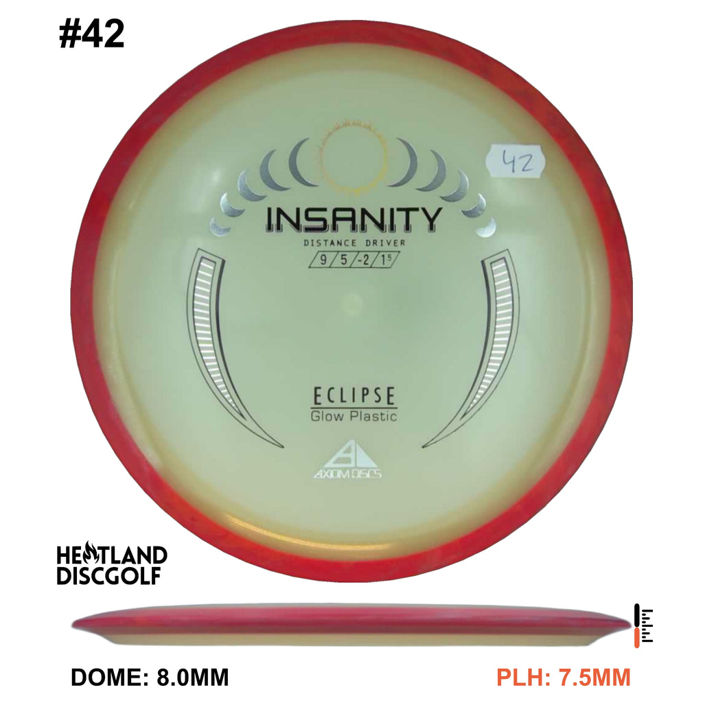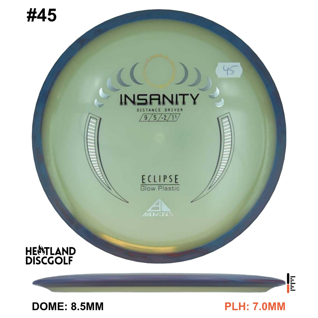 The Insanity is Axiom's first distance driver with a 20mm rim width. This disc is slightly less stable than the ultra popular MVP inertia. If you're looking for a straight flying GYRO driver with loads of attractive color options, you might as well try Insanity.