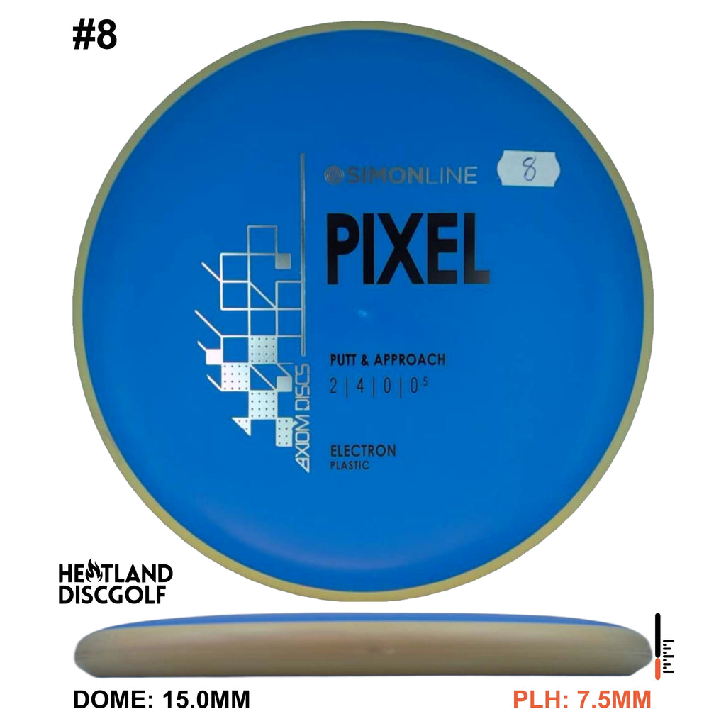 The second disc in the Simon Line is officially here, the Electron Pixel! Debuting with flight numbers of 2 | 4 | 0 | 0.5, the Pixel has a deep profile with a small micro bead, perfect for the smoothest possible release. Simon designed the Pixel to be an effortless putter, needing just a little bit of spin to glide right to the basket. Whether you’re a spin or push putter, the Pixel is an ideal putter for someone who wants a laser-straight flight..