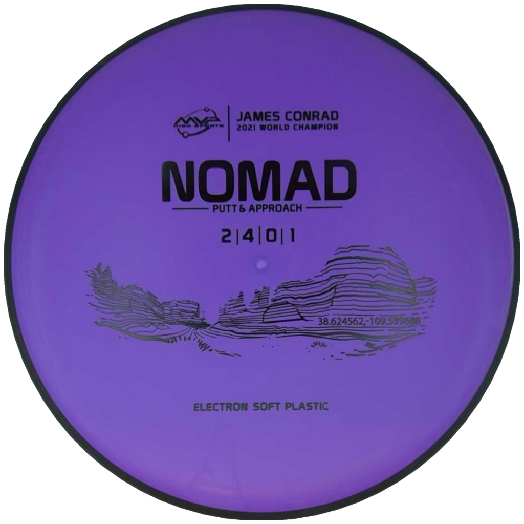 The Nomad is the first disc in the James Conrad line. This putter has a small bead to provide additional longevity. Proving to have a neutral flight on drives and a stable to overstable flight while putting. Allowing for a go-to putter that can handle power on the drives and spin on the putts.