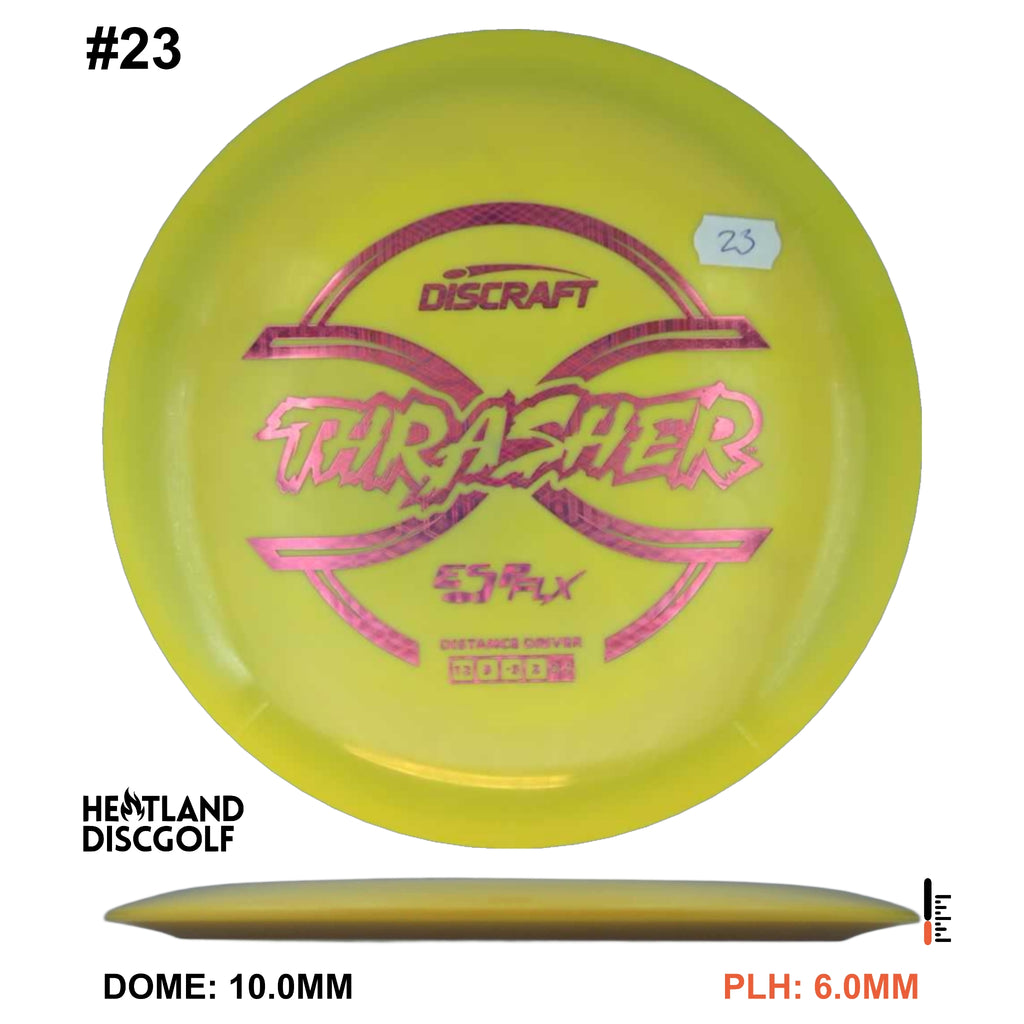 Description:                                                                                                                            Double down on your firepower with Thrasher! It's very fast and understable but not flippy, allowing huge distance from slower arms yet is completely big arm friendly. It will finish on a slow hyzer in most situations, so expect some gloriously clean anhyzers with a mild finish!