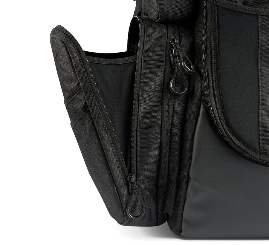 - Side access, expandable max capacity storage pockets