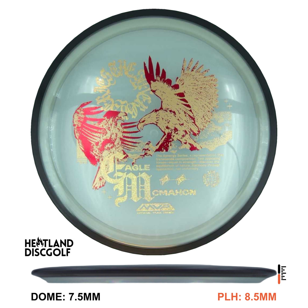 The second disc in Eagle McMahon’s Synergy Series has arrived! Choosing the Proton Resistor for his next entry – complete with another beautiful design from Green C Studio – this disc introduces the concept of equilibrium through two opposing forces equal in strength. Out on the course, not every round goes the way you hoped it would, and it becomes easy to let the negative feelings take over. This is something even professionals like Eagle McMahon have struggled with. However, through reflection and resistance he has learned that there is always good with the bad. The trick is finding equilibrium through that opposition, not uniformity – an acceptance of the natural order. Know that birdies will come with the bogies, and let the Proton Resistor be a constant and dependable reminder that you can trust the process.