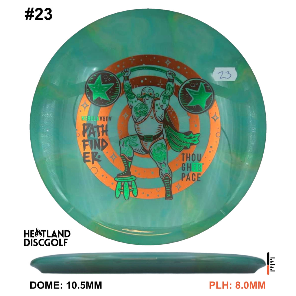 Nebula Aura is a special plastic blend with decorative swirls in bursty patterns. It has an opaque look with great durability and good grip, preferred for most drivers and throwers. The Signature edition is released in support of professional disc golfers with a portion of the sale price going directly to the player.