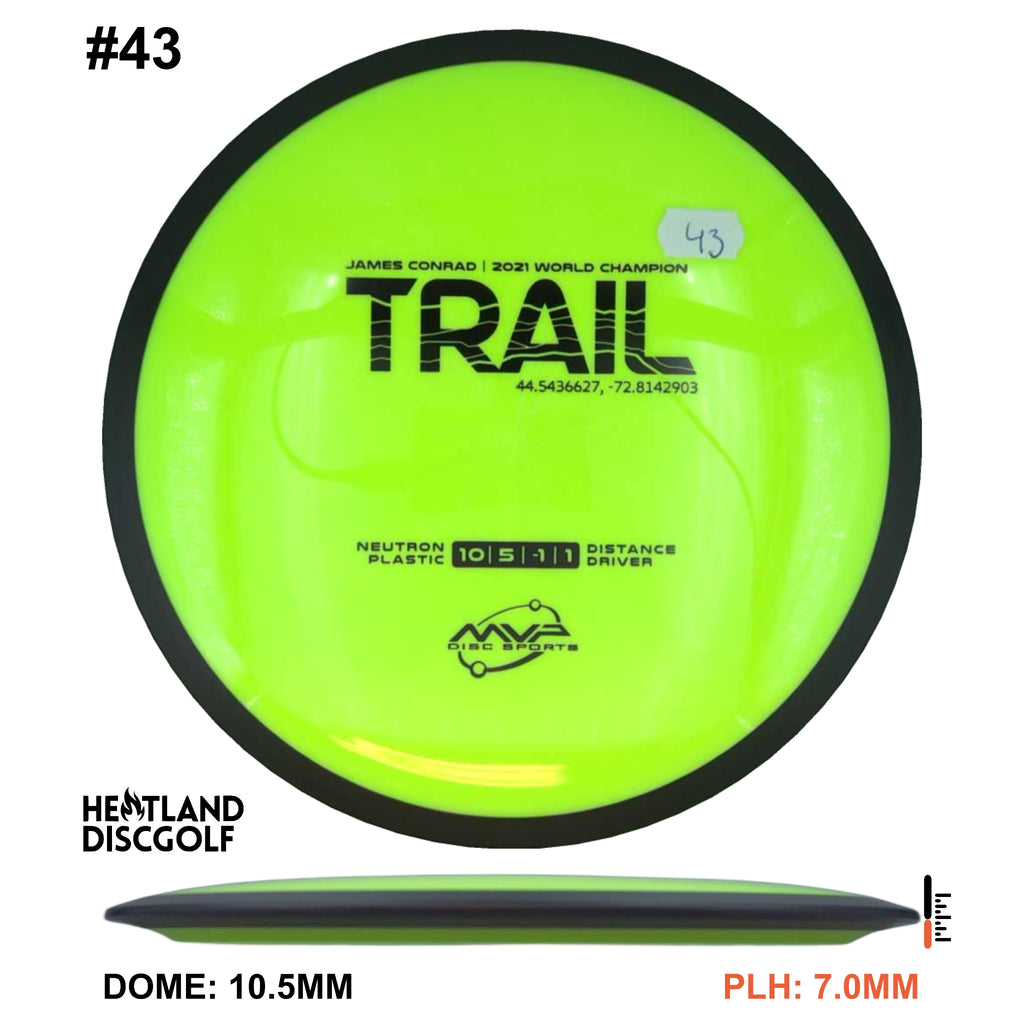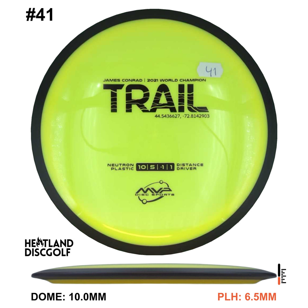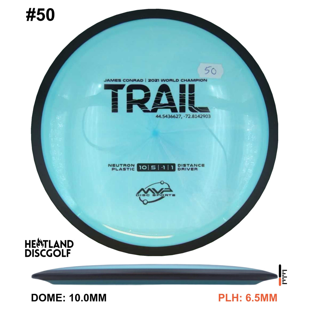 Description: The first official 10-speed driver in the MVP lineup, the Trail is a stable-understable distance driver that, as you might expect of a Conrad disc, excels in hyzer-flip drives and turnovers. Releasing with flight numbers of 10 | 5 | -1 | 1, throwers of all power levels will find the Trail to be an exceptionally responsive driver for a variety of shot shapes, making the Trail a phenomenal disc for all skill levels.