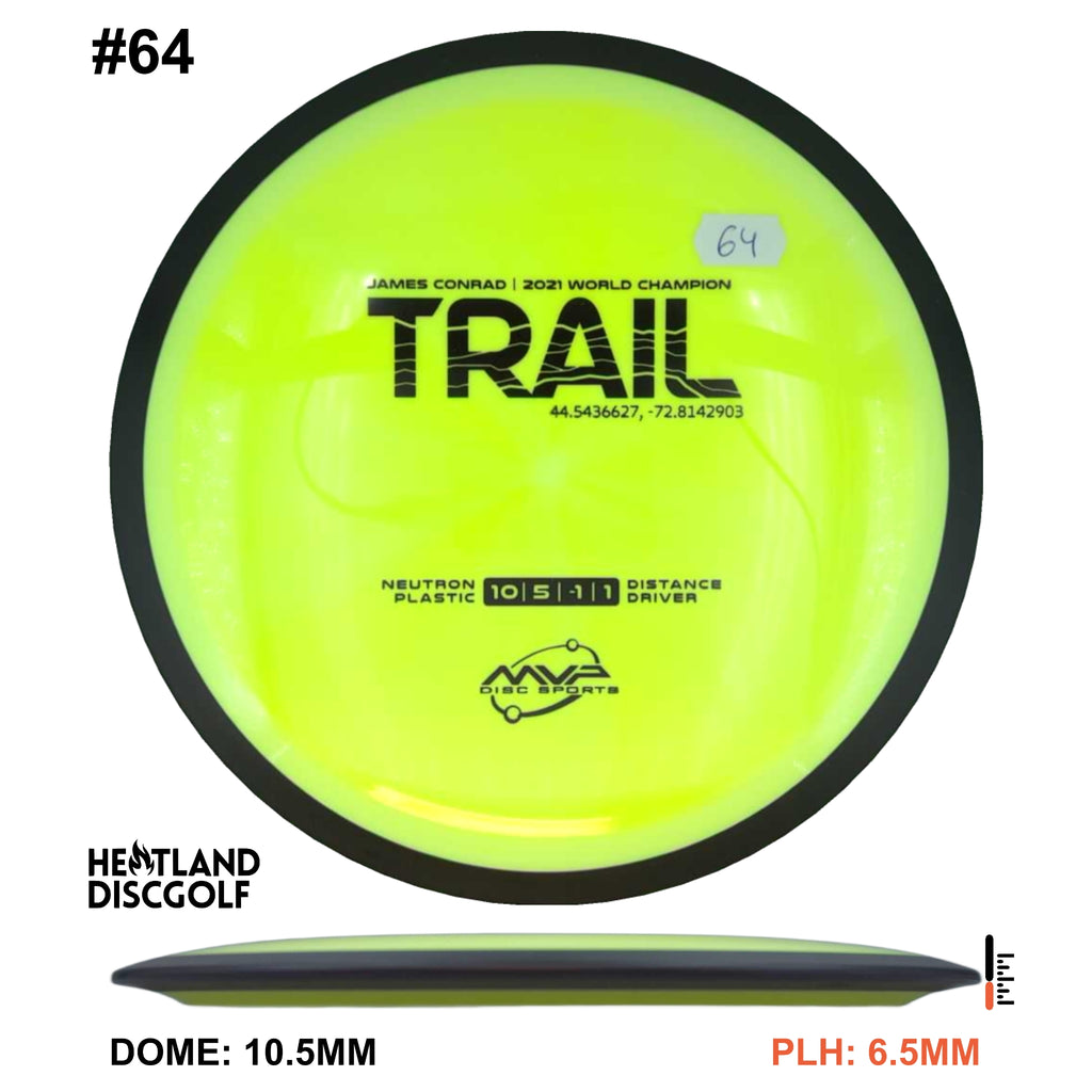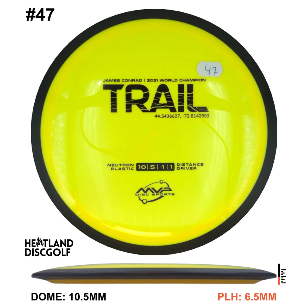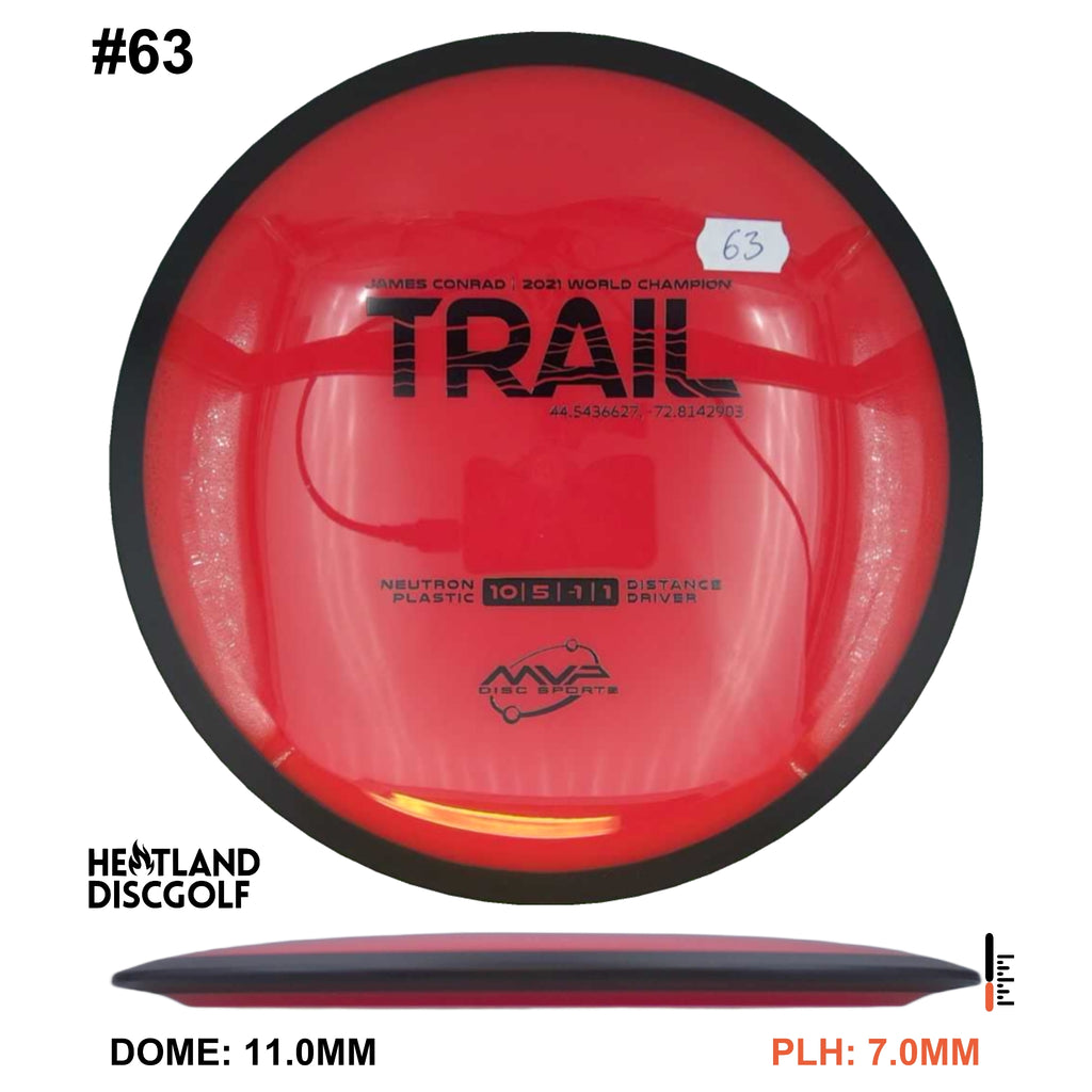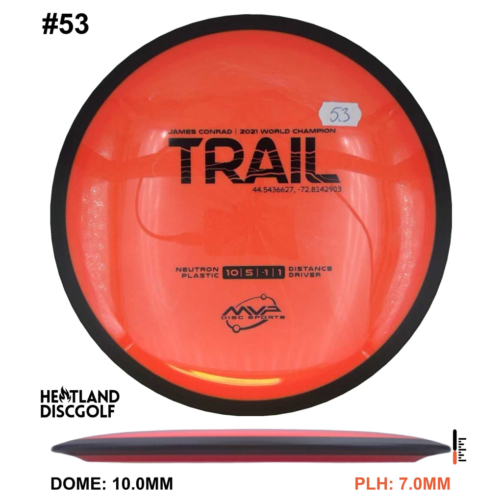 Description: The first official 10-speed driver in the MVP lineup, the Trail is a stable-understable distance driver that, as you might expect of a Conrad disc, excels in hyzer-flip drives and turnovers. Releasing with flight numbers of 10 | 5 | -1 | 1, throwers of all power levels will find the Trail to be an exceptionally responsive driver for a variety of shot shapes, making the Trail a phenomenal disc for all skill levels.