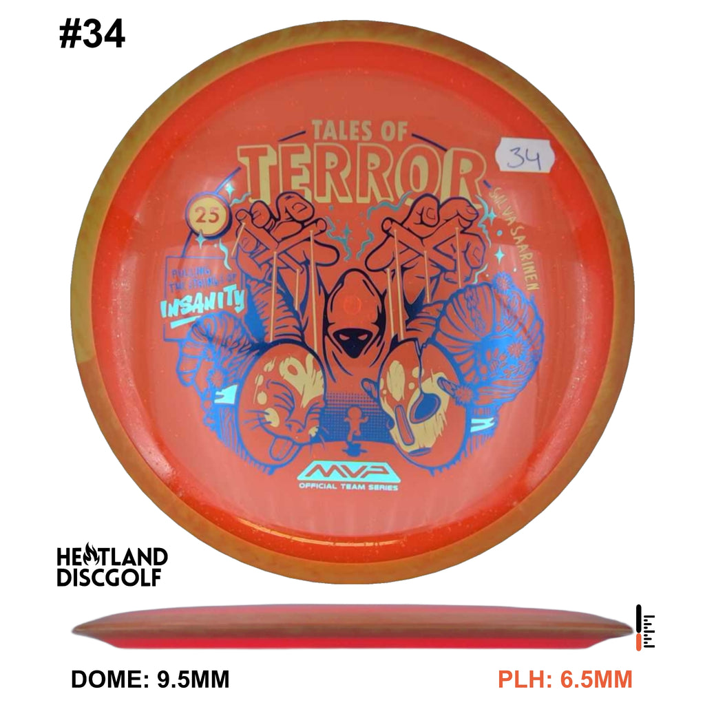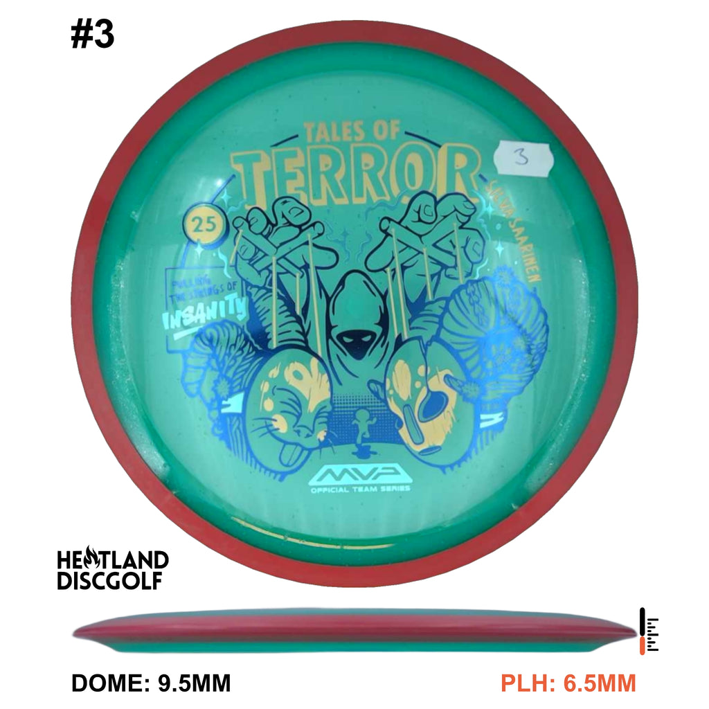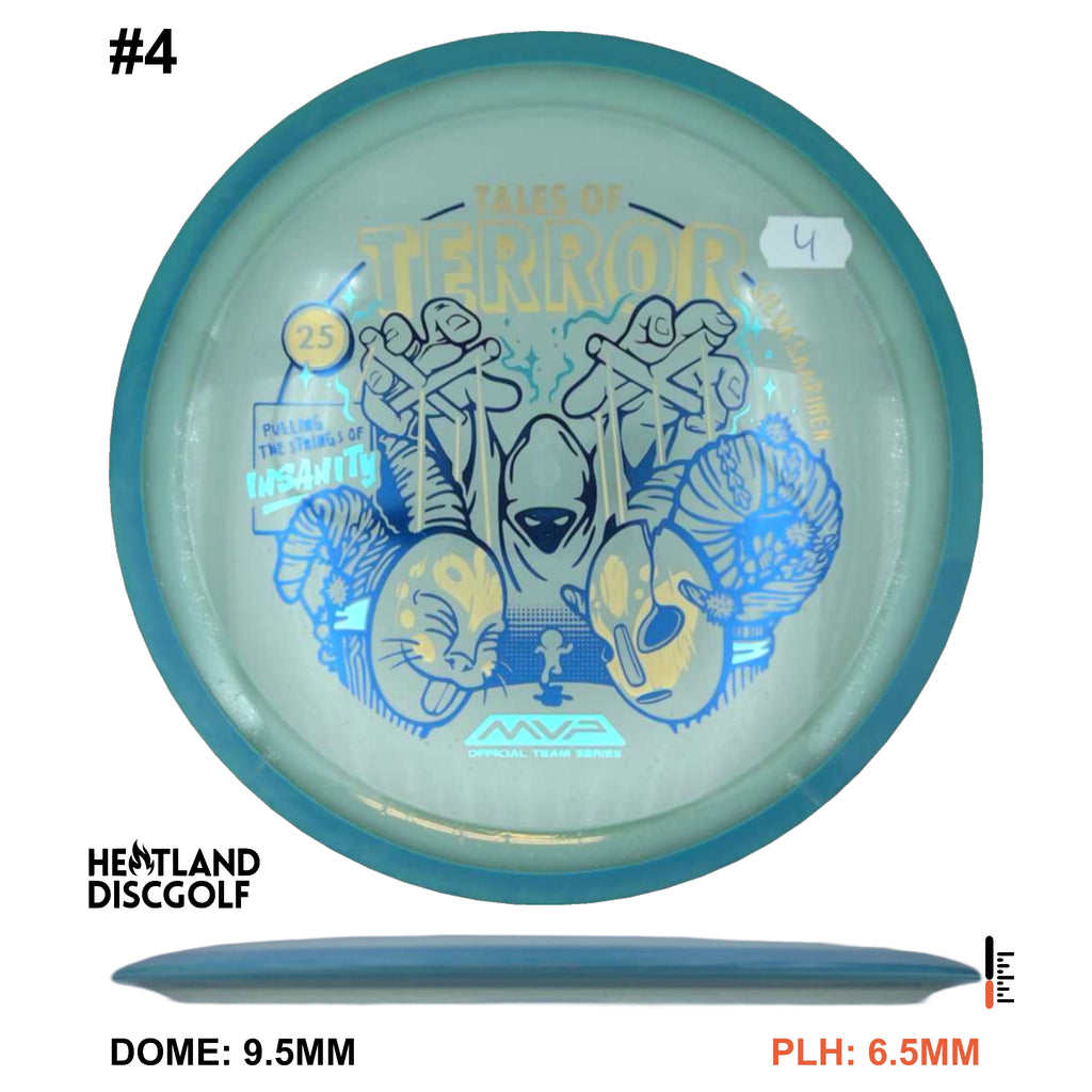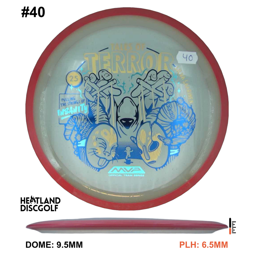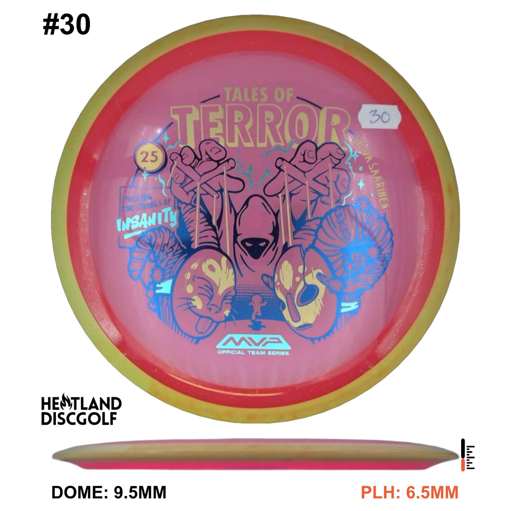 Beware the one pulling the strings during the Finnish Harvest Festival! Stamp newcomer Damian White unveils his first MVP stamp for this Halloween comic inspired design on the Particle Proton Insanity, a warning that some ornaments created for this event are a bit more ghoulish than they appear. The Insanity is a stable-understable driver that players will find easy to manipulate, with average power throws being remarkably straight with forward pushing fade, and higher power throws resulting in precise hyzer-flips, turnovers, and beautiful s-lines. Don’t let the course pull your strings - grab a Particle Proton Insanity today and prove who the true master is.