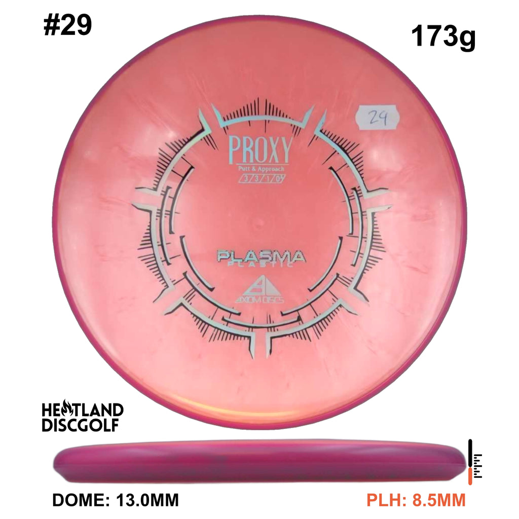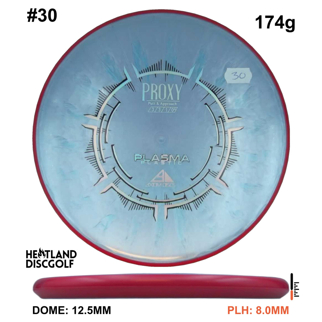 The Proxy is our straightest flying putter. It can hold a very straight line even with low power. Throwers with moderate power will be able to achieve hyzers, panning anhyzers, as well as straight shots depending on the angle of release. It features a similar comfortable feel as the Envy which makes it very reliable and forgiving. The Proxy is set to release this winter." - by Axiom Discs
