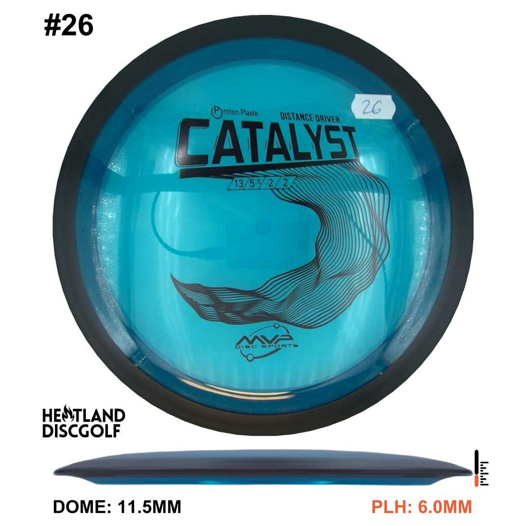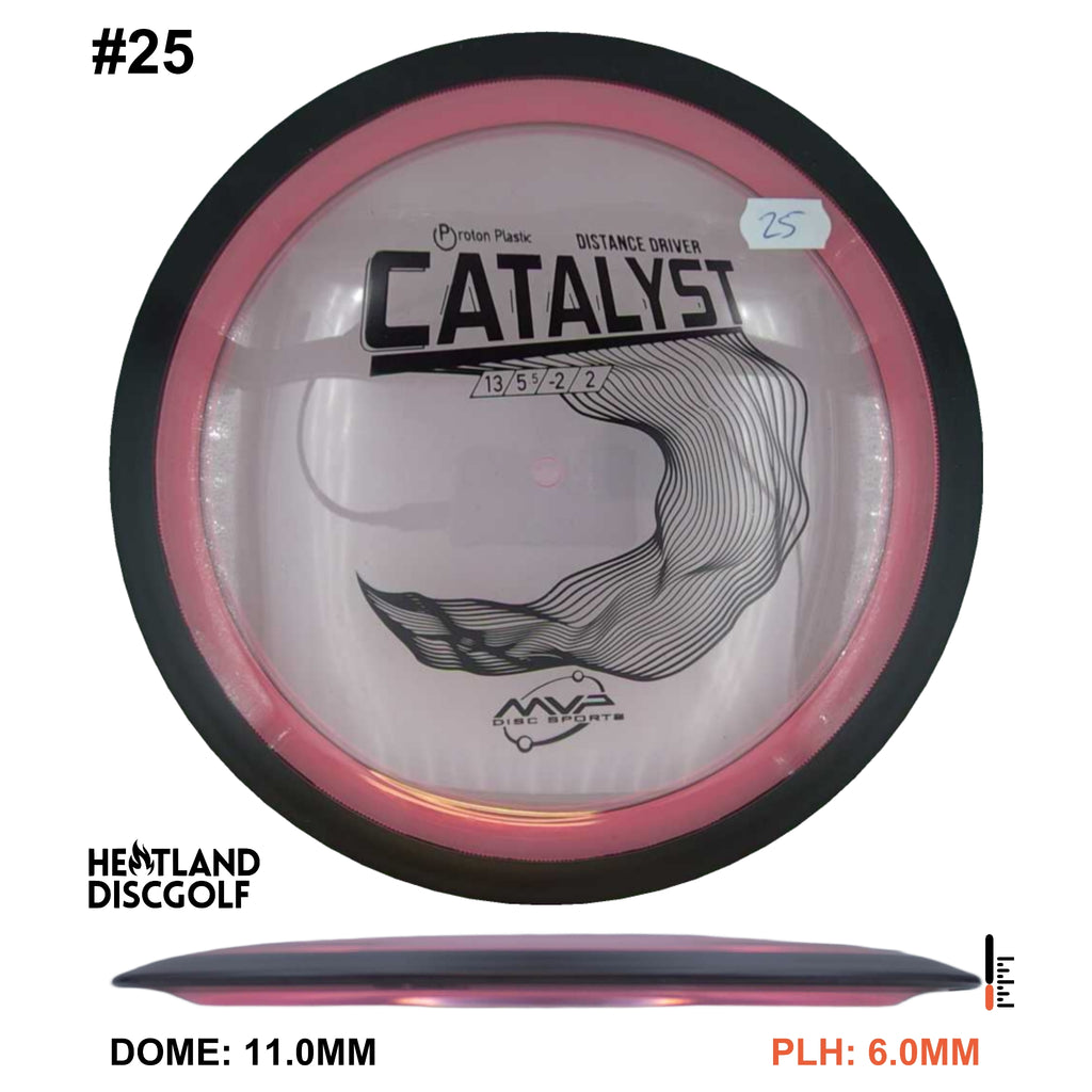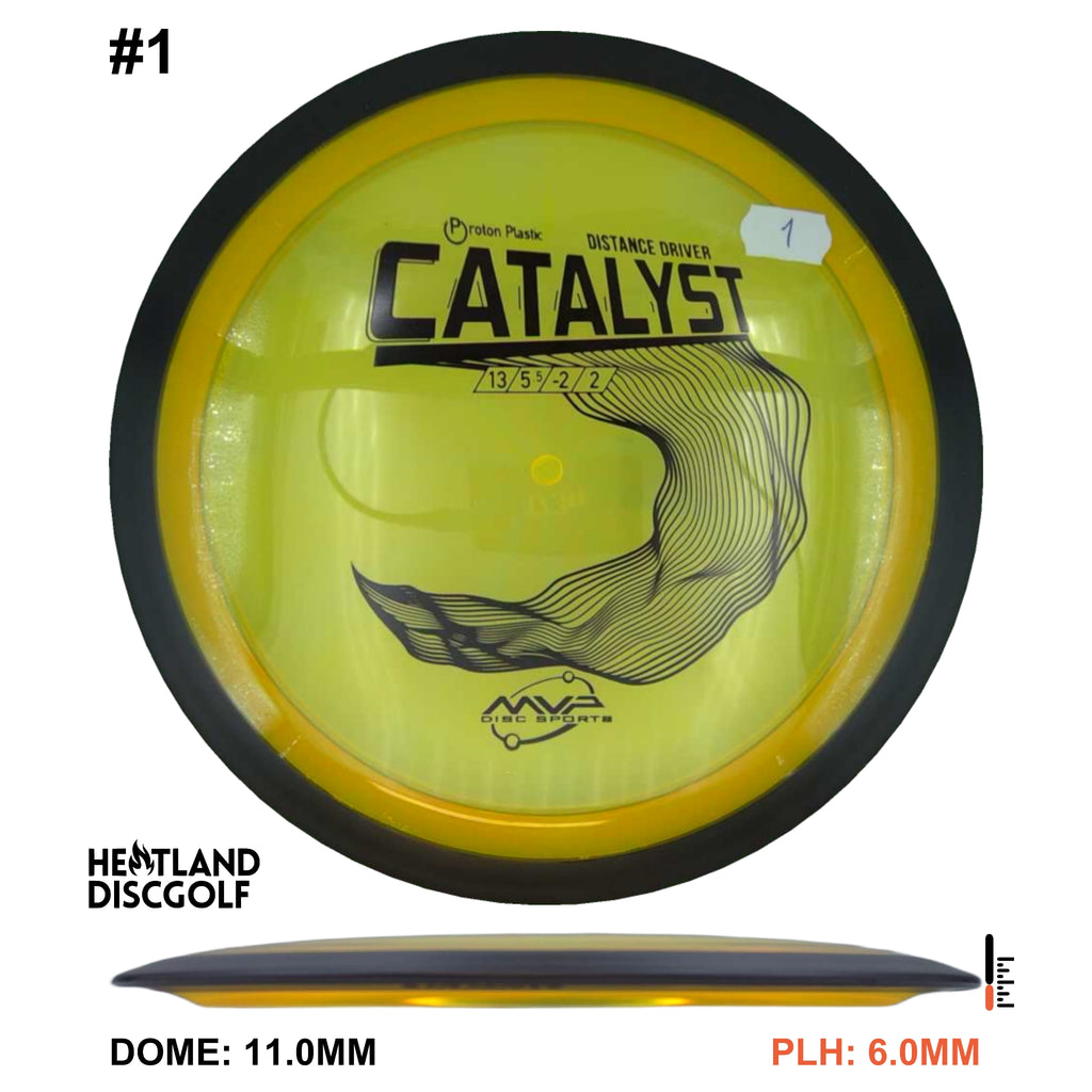 The Catalyst can bring huge distance to advanced and beginner players alike, as it remains consistent even when thrown with less power. The Catalyst is more stable than the Orbital, but still an understable disc. Big arms will be able to control rollers and sky anhyzers. Less powerful arms will get great distance with the Catalyst's glide and understability.