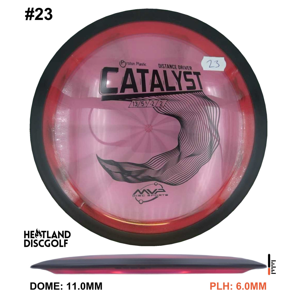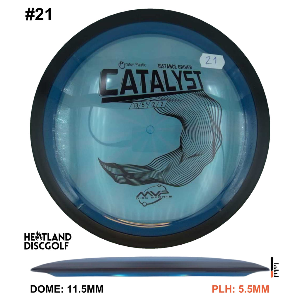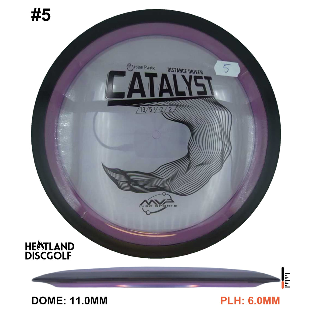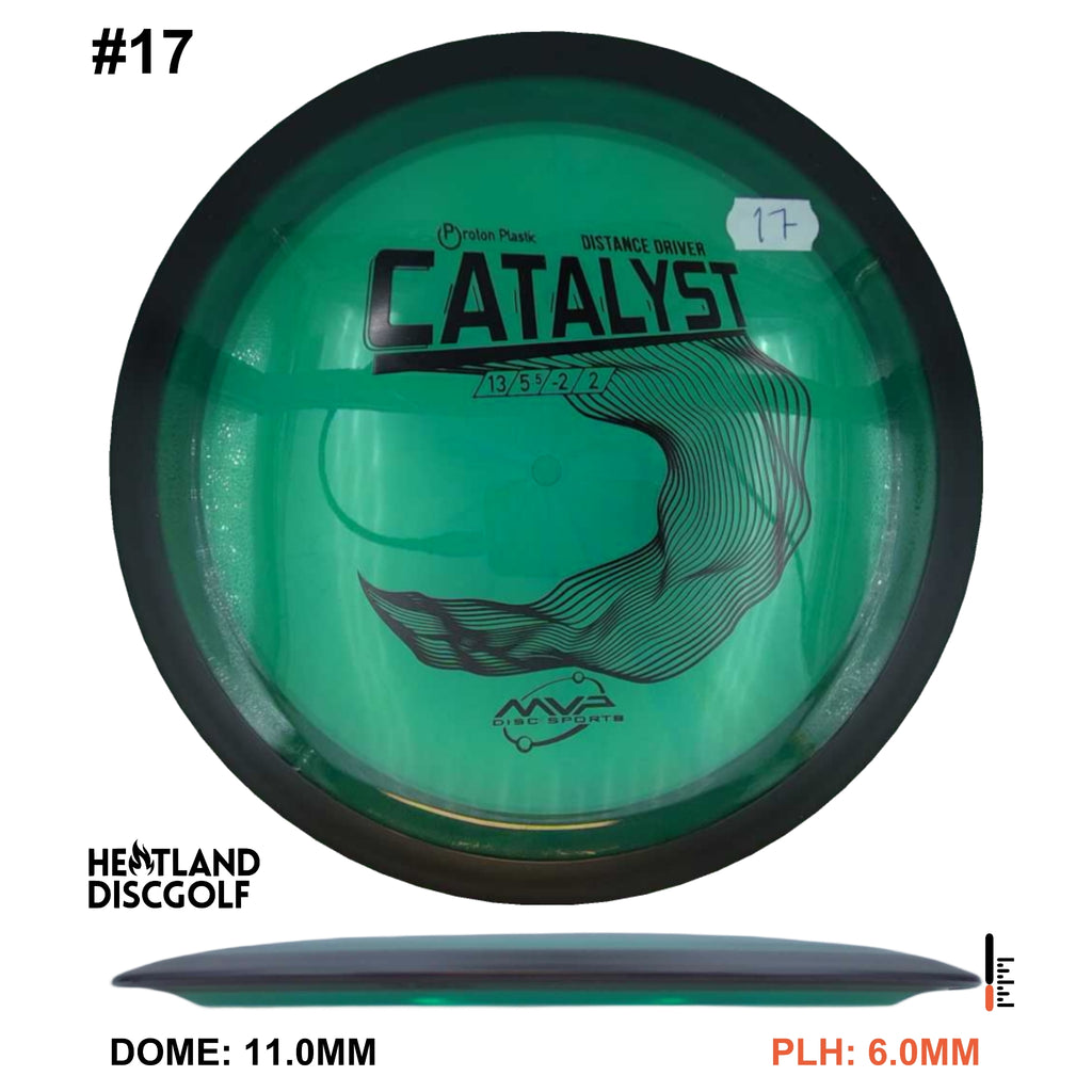 The Catalyst can bring huge distance to advanced and beginner players alike, as it remains consistent even when thrown with less power. The Catalyst is more stable than the Orbital, but still an understable disc. Big arms will be able to control rollers and sky anhyzers. Less powerful arms will get great distance with the Catalyst's glide and understability.