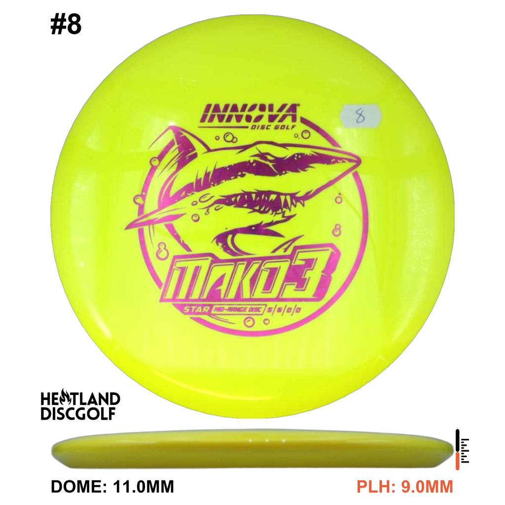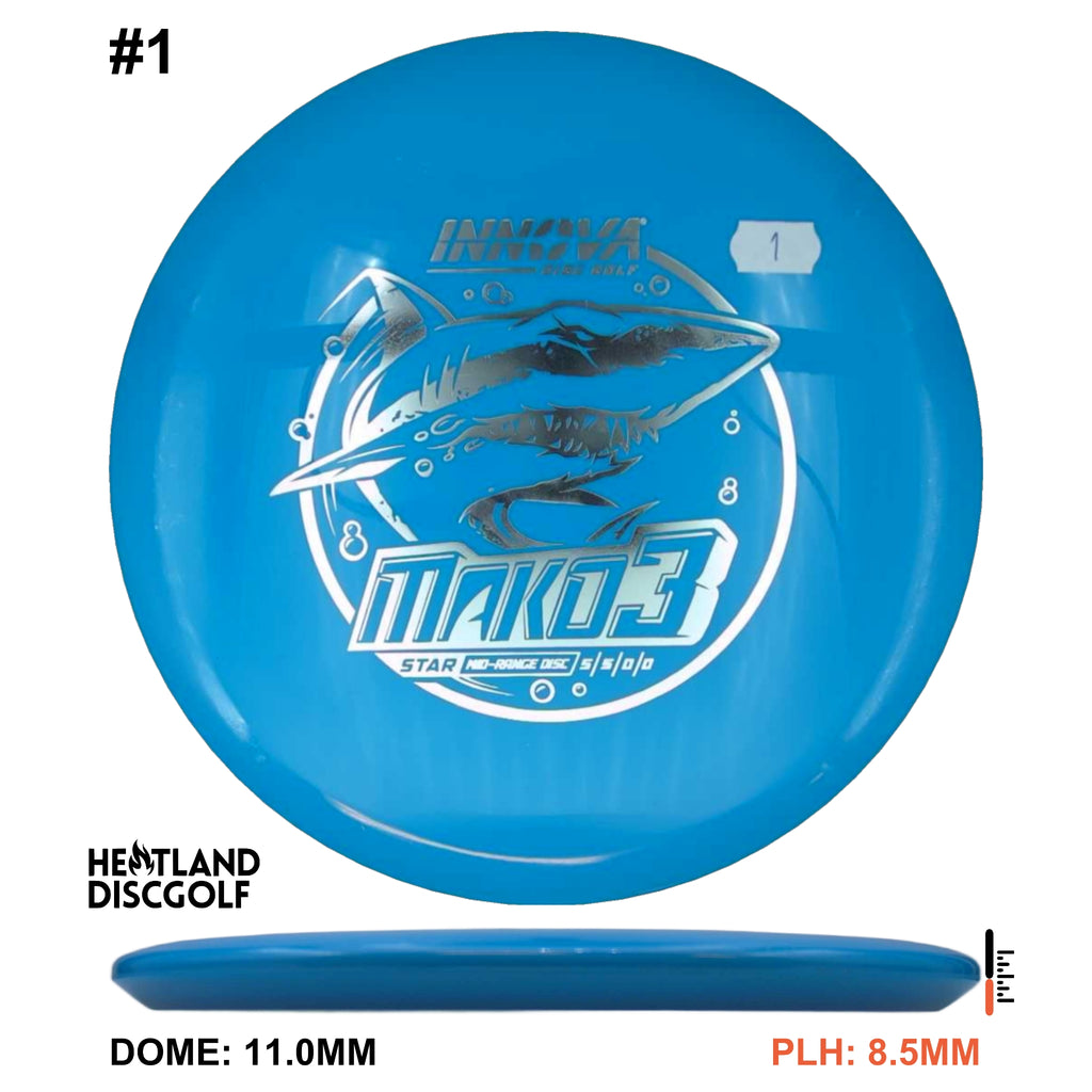 Mako3 has a smooth straight flight path with minimal fade in the end, when thrown with low to moderate amount of power. When thrown with high power, the Mako3 will gradually turn, making it optimal disc for long turning anhyzer shots even on a narrow line.