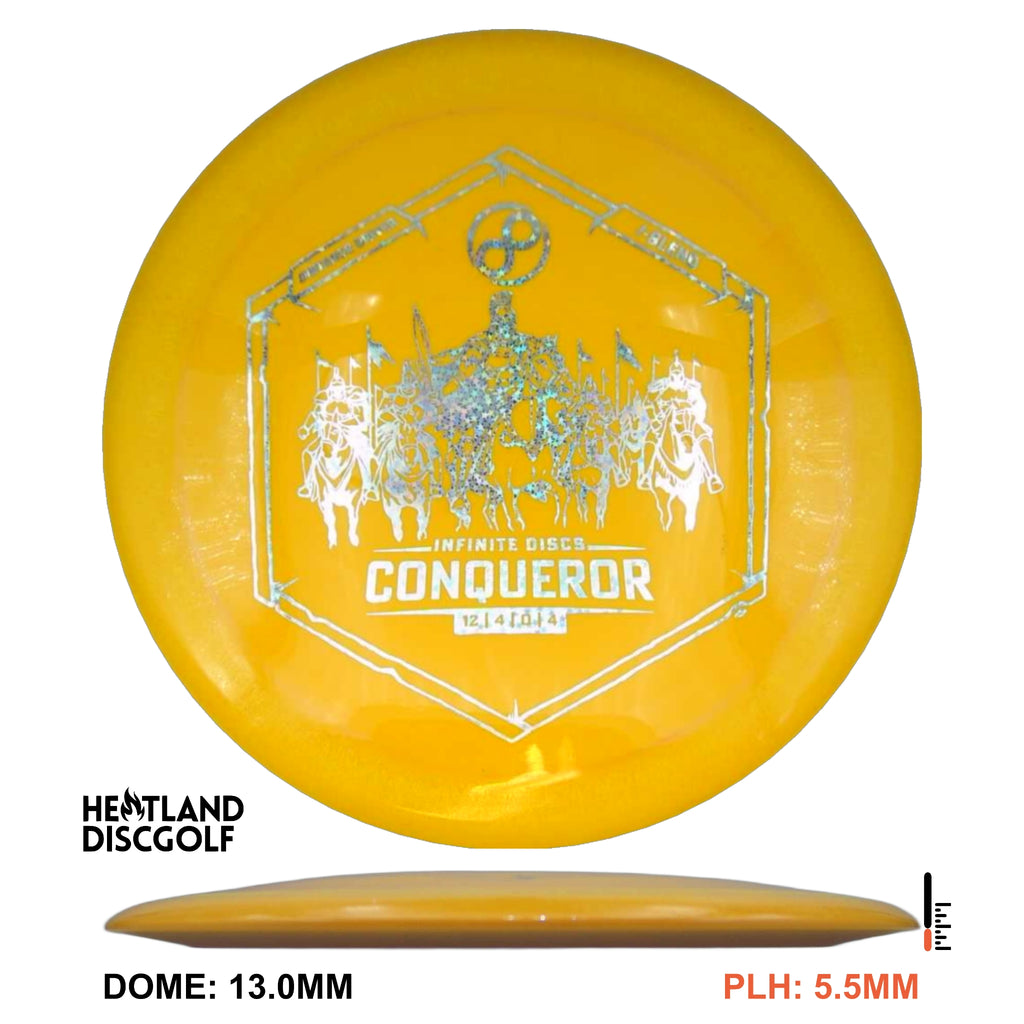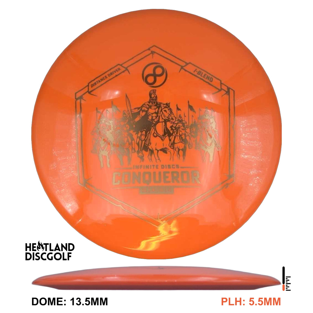 The Conqueror by Infinite Discs is a formidable overstable distance driver designed to conquer the challenges of the most powerful throws, even in the hands of professional players. When unleashed, the Conqueror showcases an impressive end-of-flight fade, whether launched forehand or backhand, and dependably conquers fierce headwinds with unwavering stability.